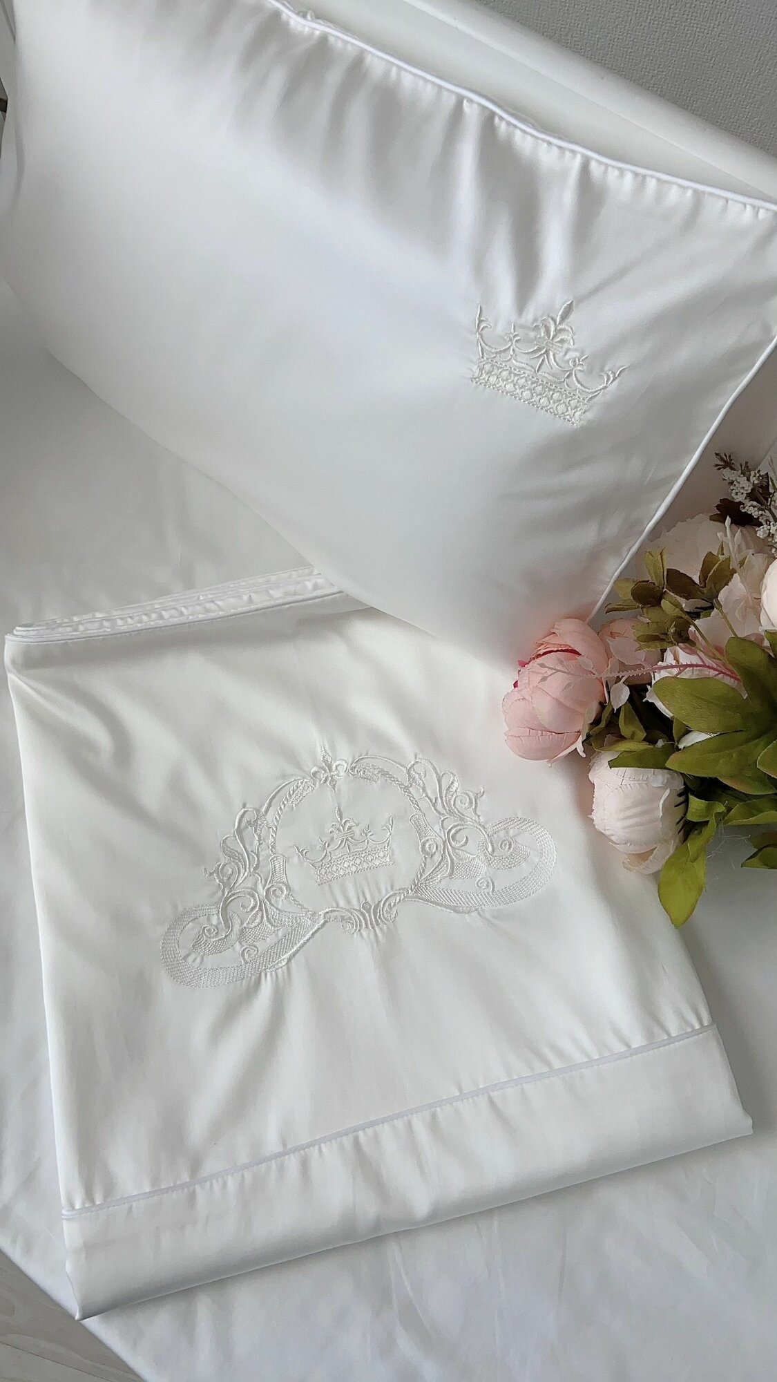 Детское постельное белье для колыбели Tutti Bambini CoZee для новорожденных, с вышивкой, однотонное, без рисунка, сатин люкс. Белый информация: