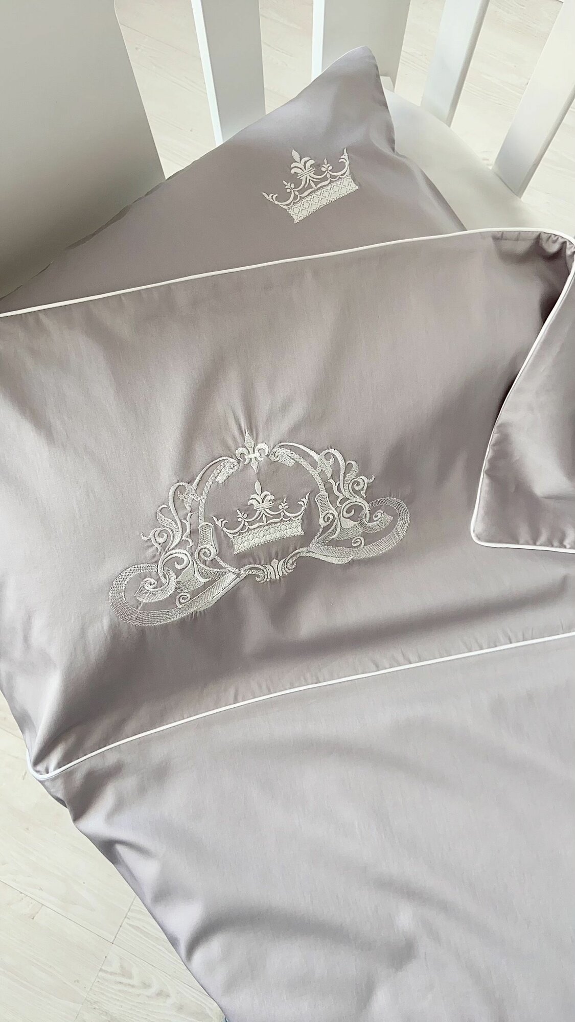 Детское постельное белье для колыбели Tutti Bambini CoZee для новорожденных, с вышивкой, однотонное, без рисунка, сатин люкс. Серый информация: