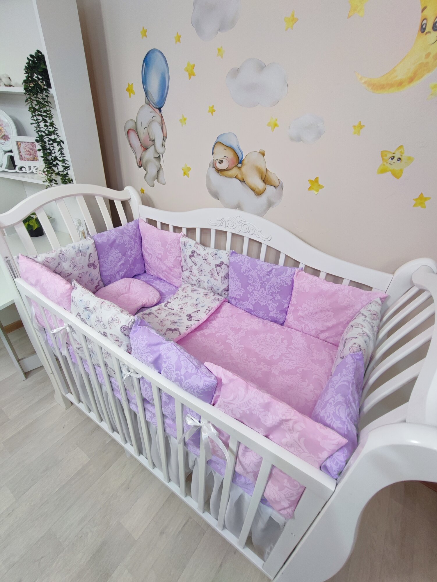 Комплект бортиков в кроватку из 15 предметов Mamdis для новорожденных и малышей сиреневый информация: