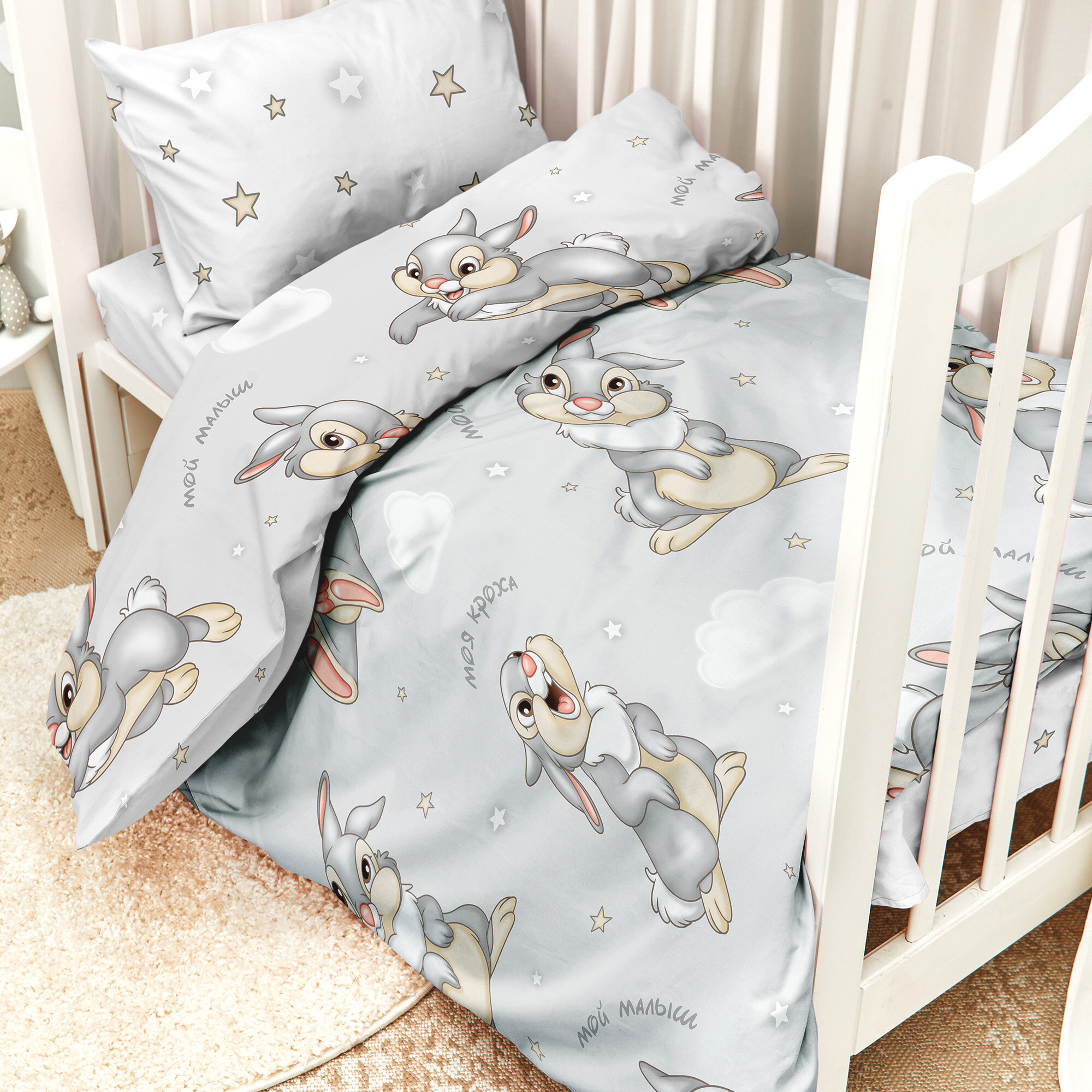 10 цен на Детское постельное белье в кроватку для новорожденного Juno, Поплин, нав. 40х60, на резинке, Заяц топотун