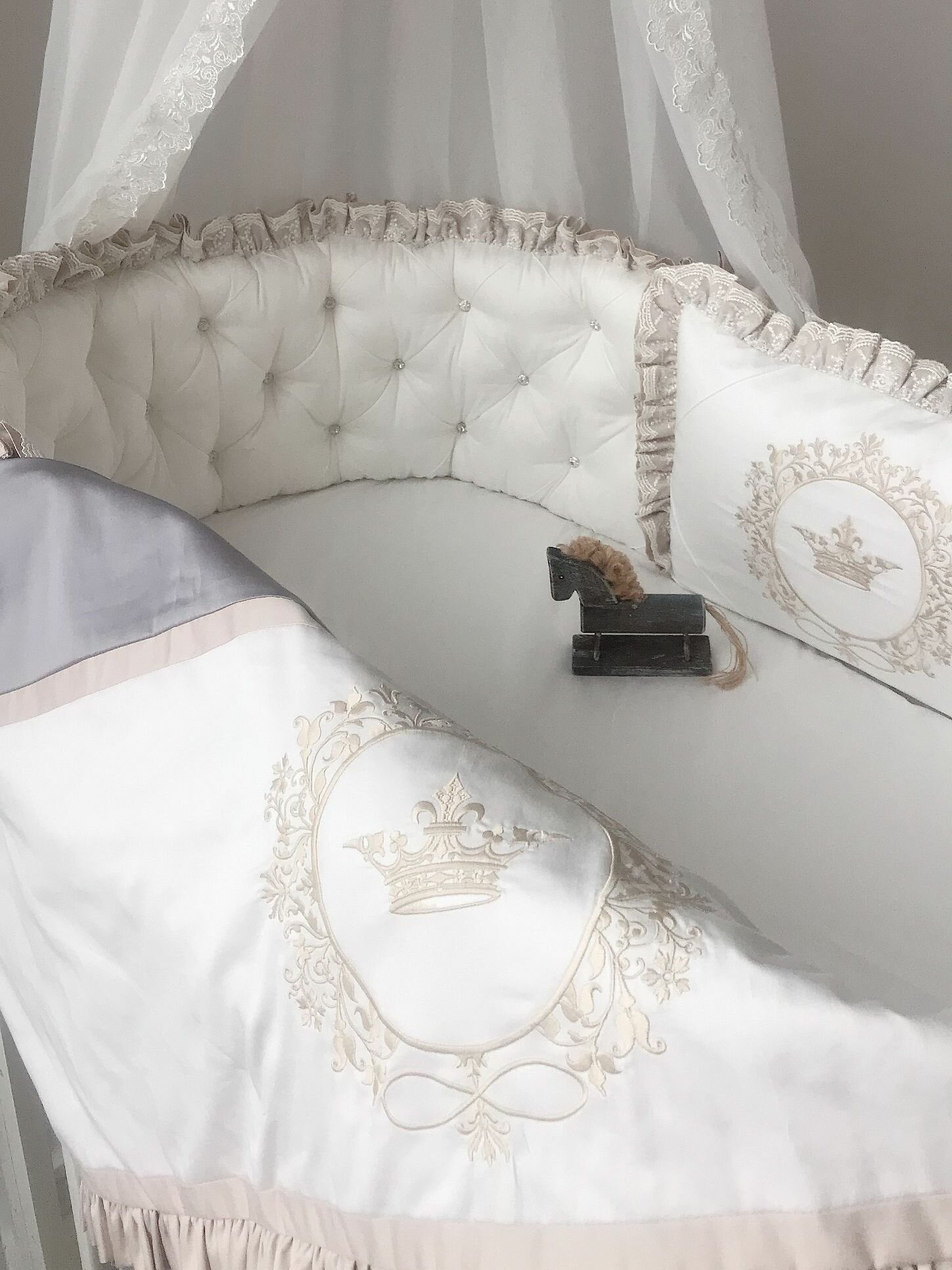 Бортики в кроватку для новорожденных "Роскошь", в кроватку для новорожденных 120*60 см или в овальную 125*75 см, сатин и тенсель 12 103 ₽