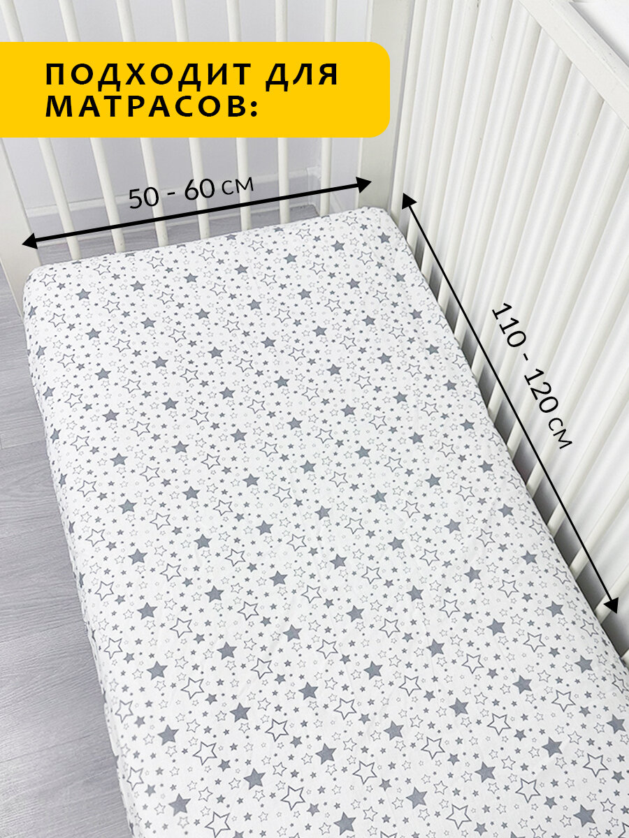 10 цен на Простынь детская на резинке 120х60 см Звездопад