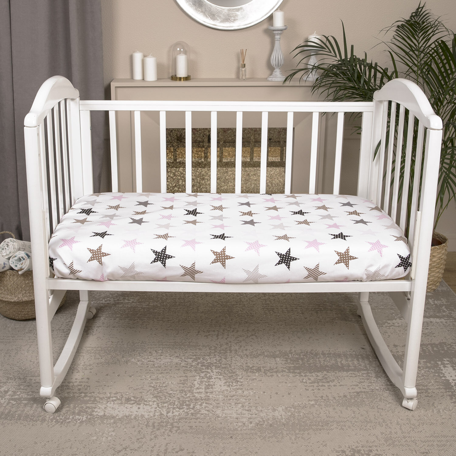 Простыня на резинке 120х60 см в детскую кроватку Хлопок 100% бязь, Tessolo Home, "Звезды серые", белая 365 ₽