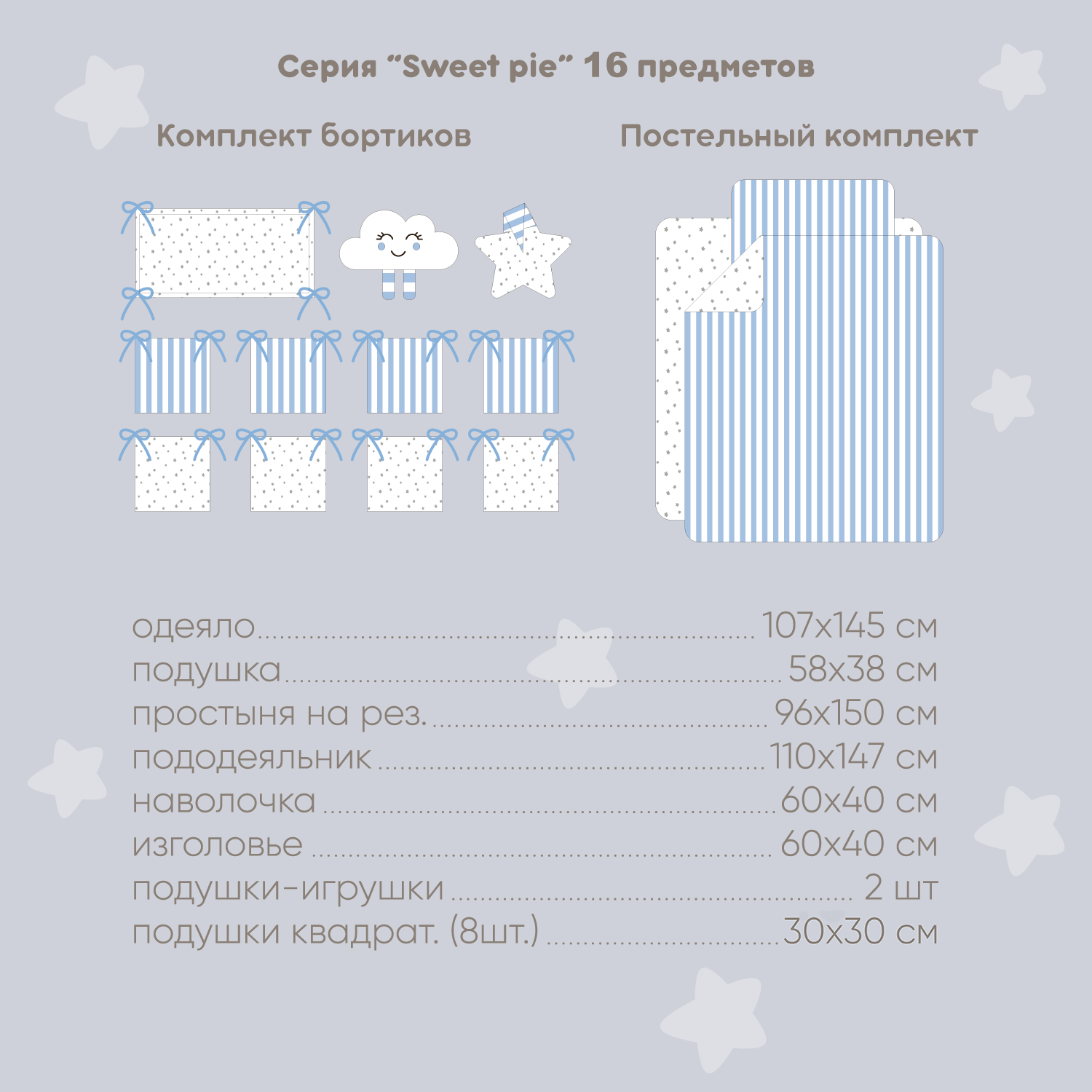 Бортики в кроватку с постельным бельем для новорожденного "Sweet dino", 13 предметов, хлопок/полиэстер 5 824 ₽