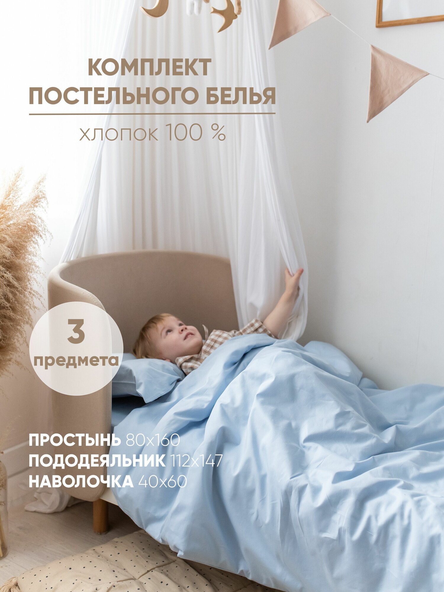 Отзывы на Постельное белье детское 160х80 Sondetti Сатин, простынь на резинке 160х80 детская, пододеяльник 112х147 / наволочка 40х60