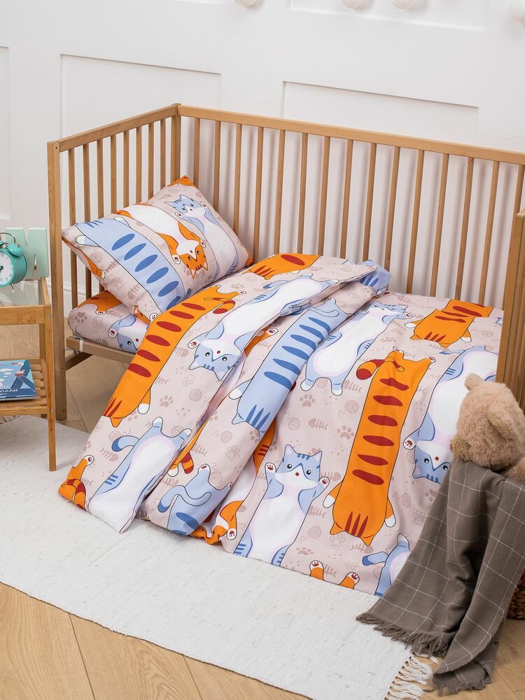 Комплект постельного белья в детскую кроватку, бязь "Комфорт", детская расцветка (Кот батон) информация: