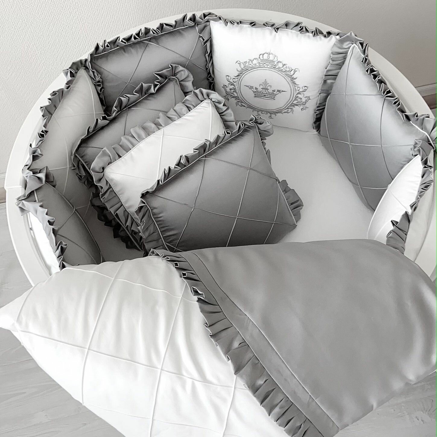 Бортики в кроватку для новорожденных "Идеал", в кроватку для новорожденных 120*60 см или овальной 125*75 см, сатин 11 011 ₽