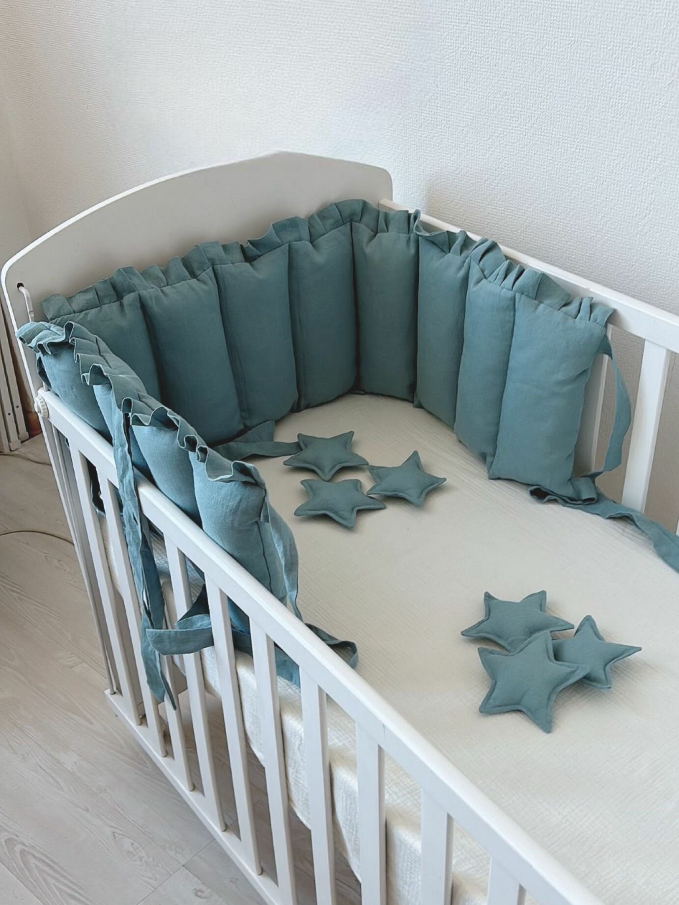 Отзывы на Бортики из льна на половину кроватки 120*60 см с рюшей (оборкой)