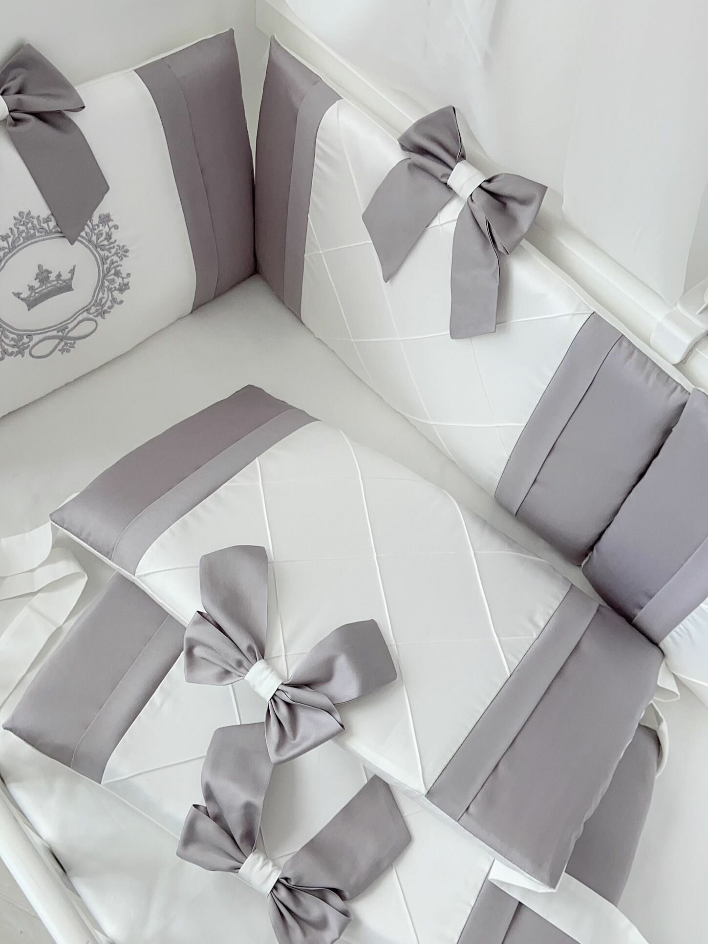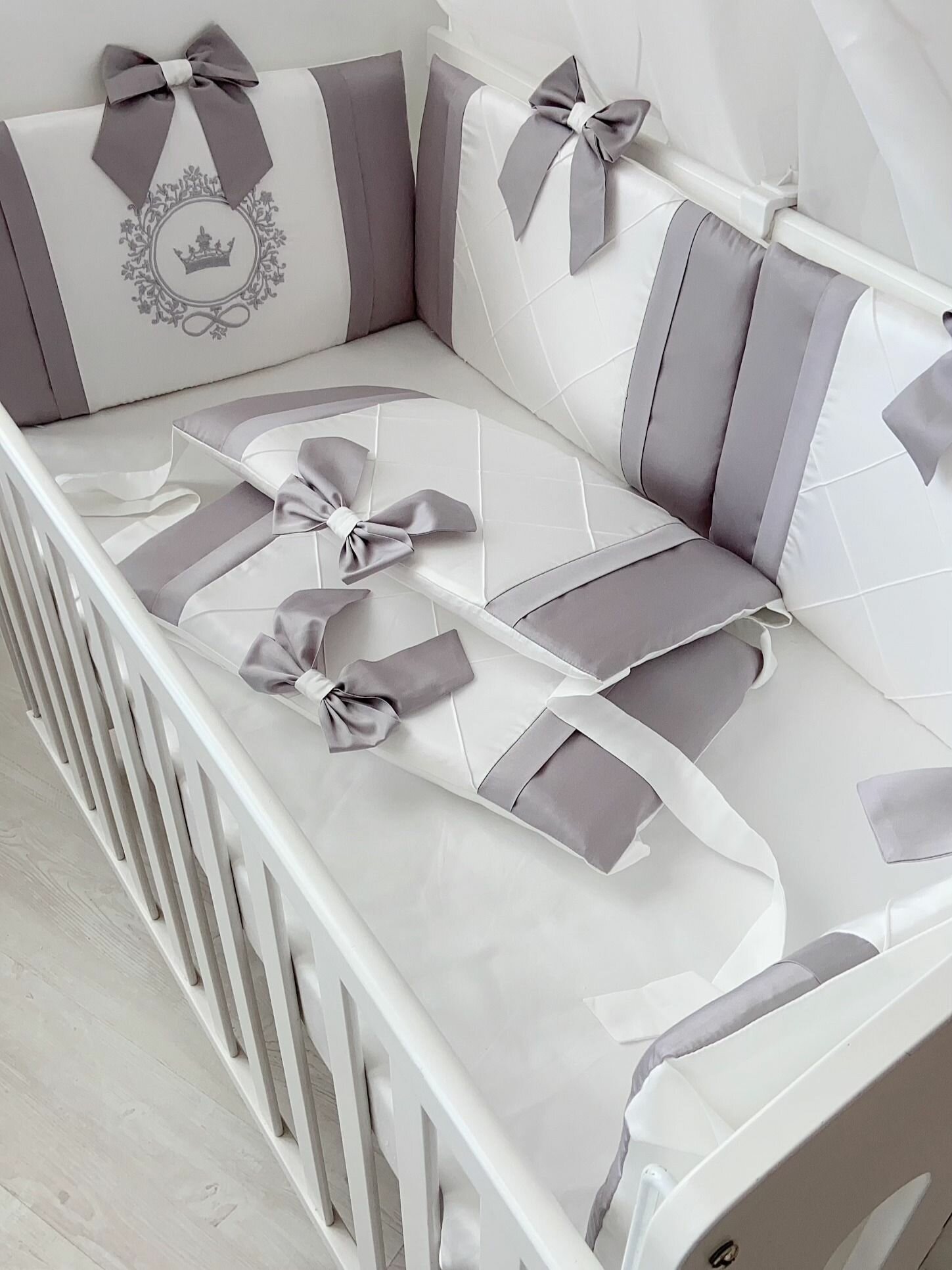 10 цен на Бортики в кроватку для новорожденного "Вдохновение", серый, 6 подушек на всю кроватку 120*60 см, 125*65 см, сатин, KrisFi