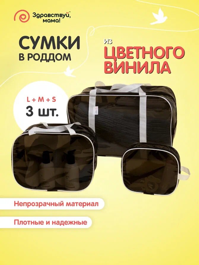 Сумка в роддом, для мамы и малыша "здравствуй, мама!", шоколадный набор из 3 шт. информация: