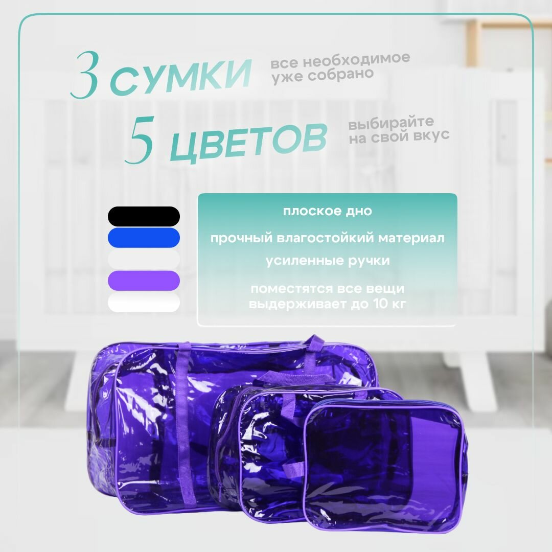 Сумка в роддом готовая для мамы и малыша с наполнением Full mom Maxi, 74 предмета, фиолетовая информация: