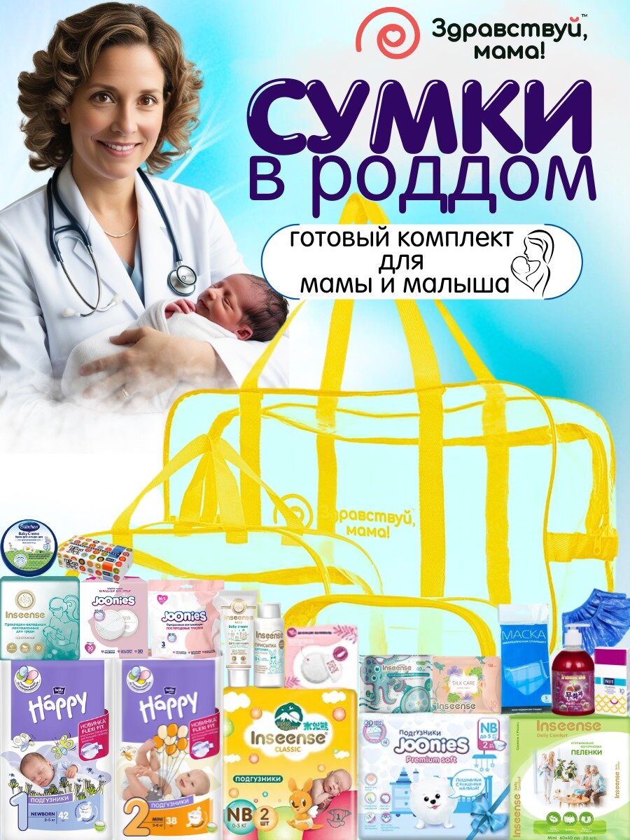 Отзывы на Готовая сумка в роддом, для мамы и малыша с наполнением "ЗДРАВСТВУЙ, МАМА!", желтый, набор из 3 сумок, 24 предмета