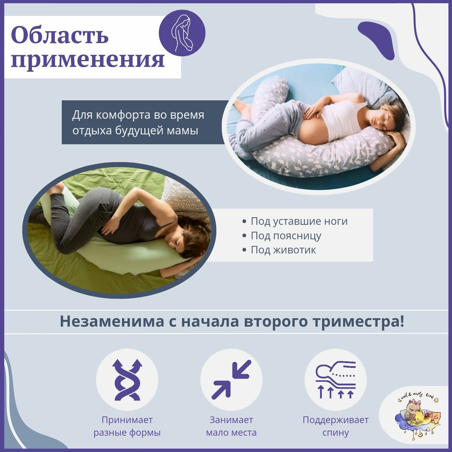 Подушка для беременных "Owl&EarlyBird" - удобная и комфортная форма "рогалик" 3 339 ₽