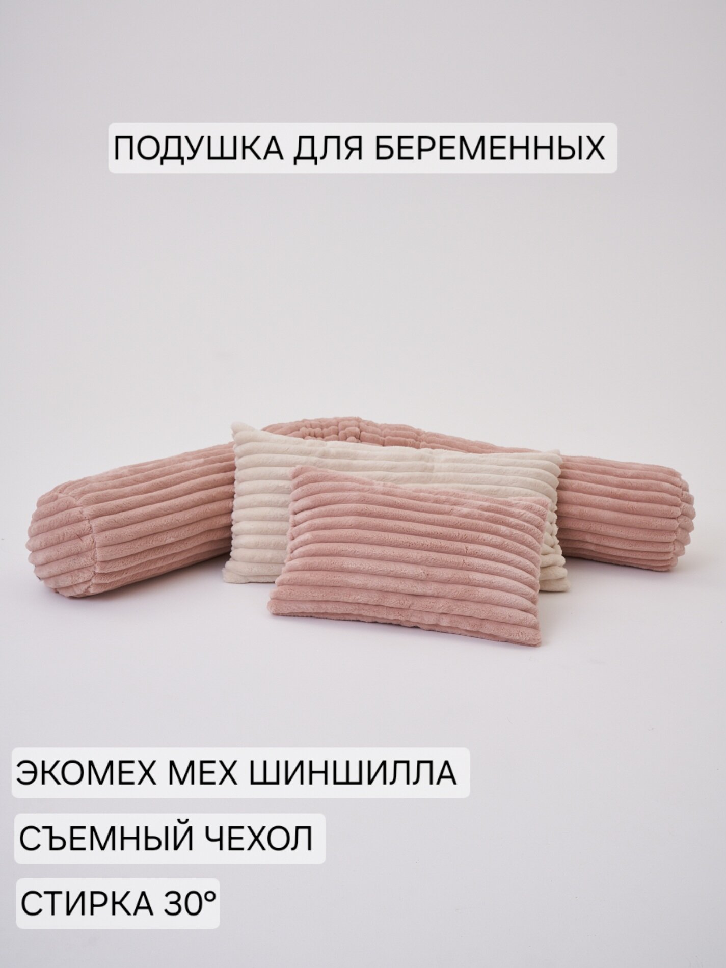 Подушки для беременных, розовая, длина 155 см, эко мех Шиншилла, Наполнитель синтешар, съёмный чехол, стирка 30°, 9 000 ₽