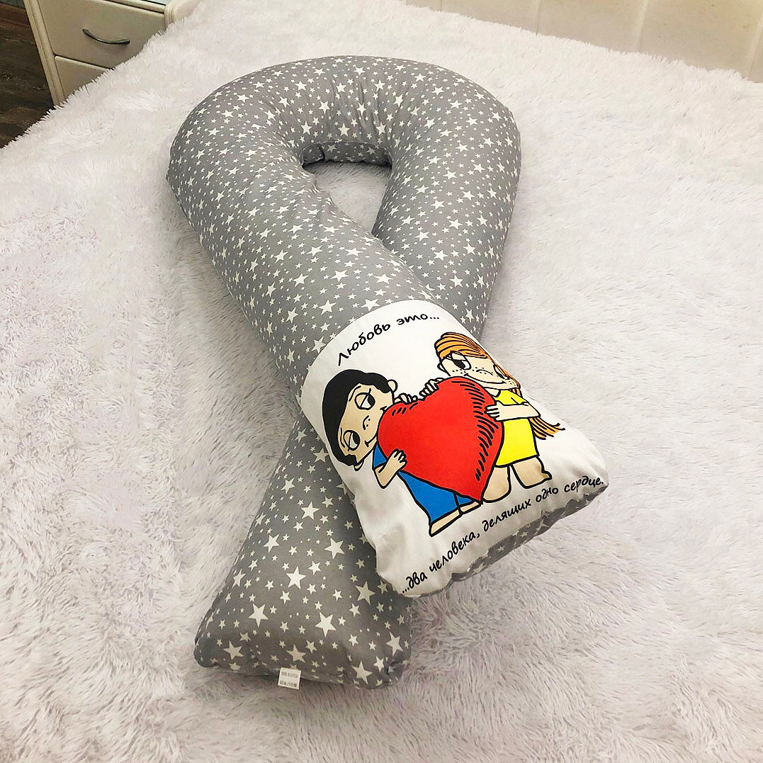 10 цен на Подушка для беременных Mamapillow U 340 + наволочка звездопад с дизайном Love is
