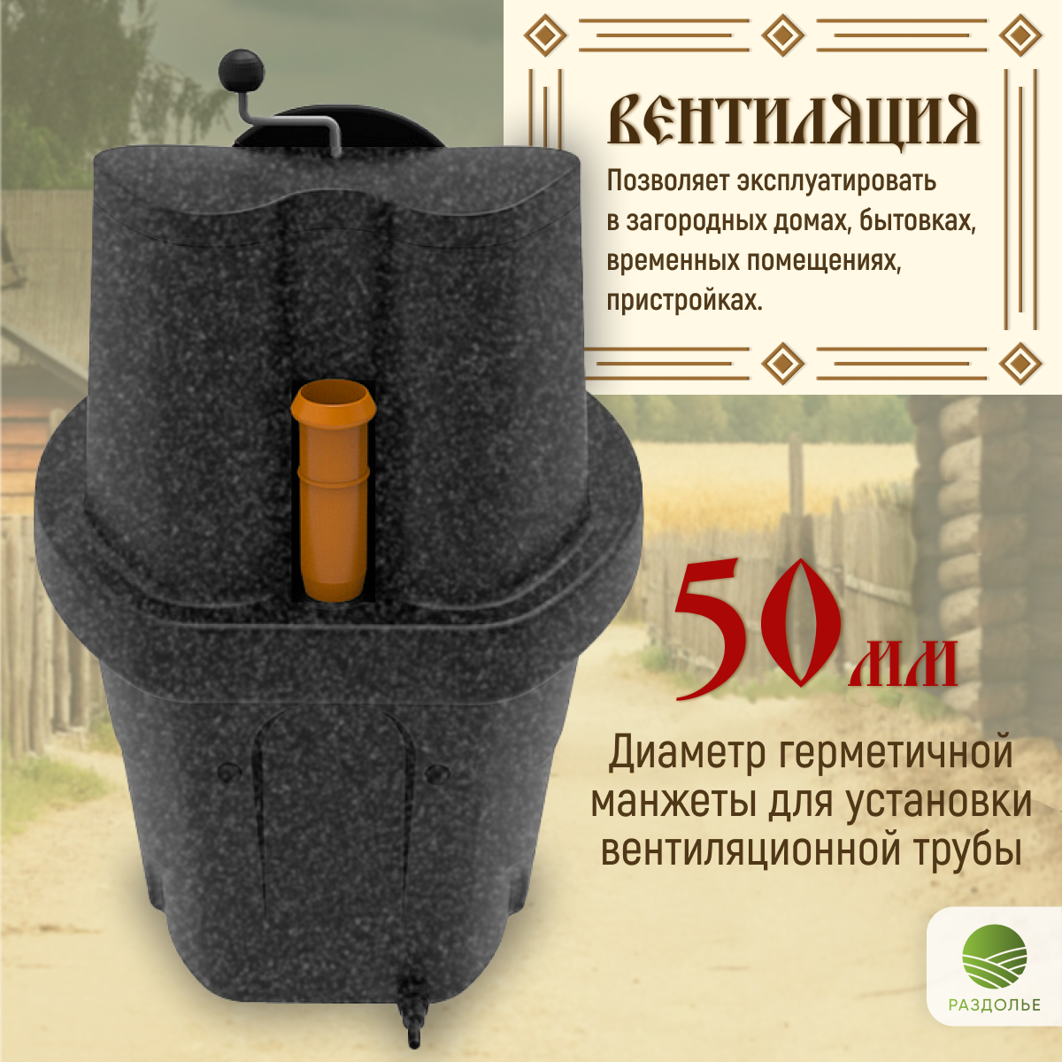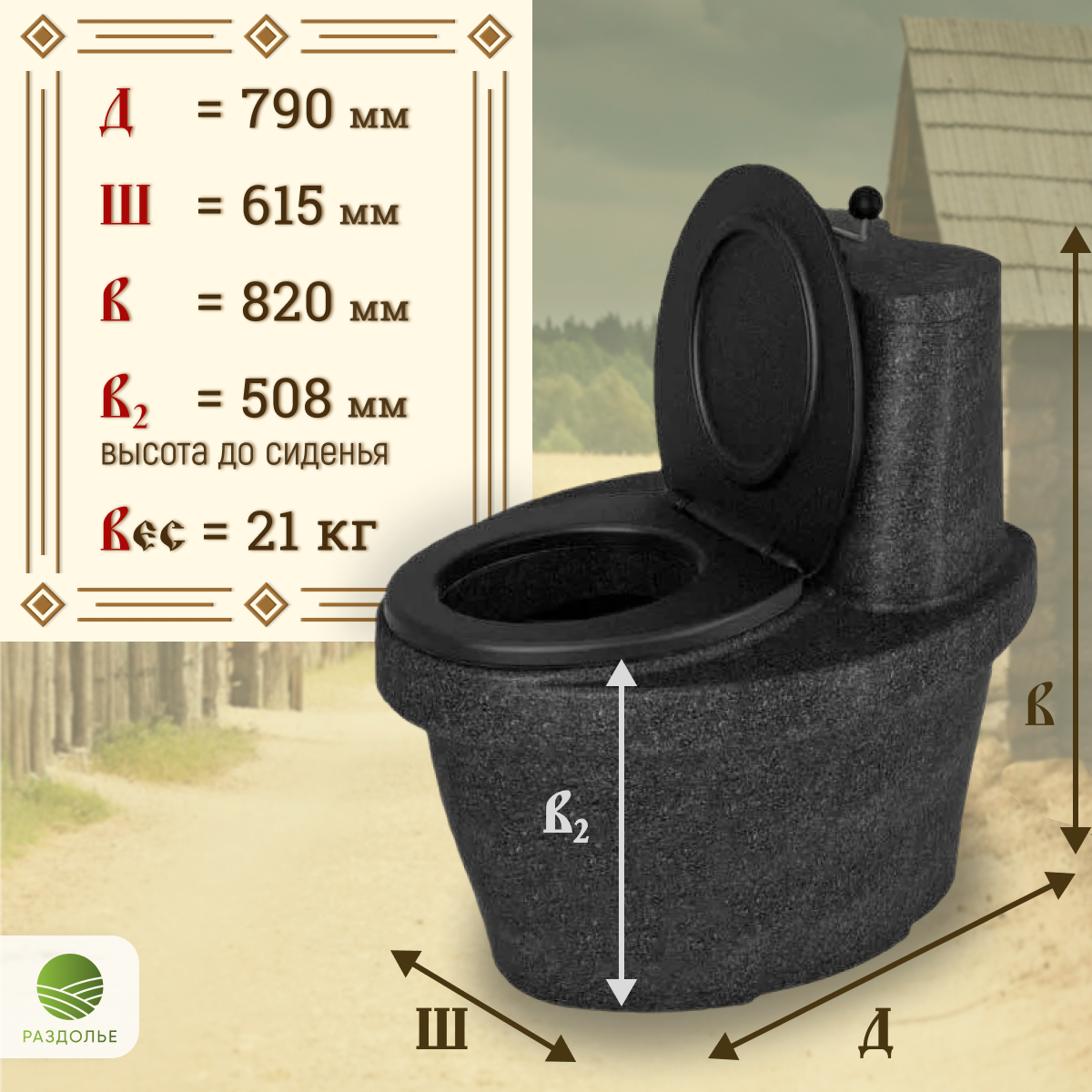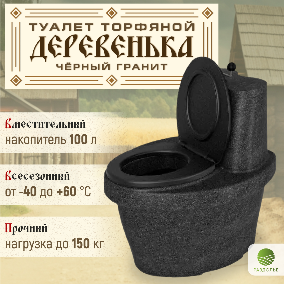 Туалет торфяной Раздолье Деревенька чёрный гранит информация: