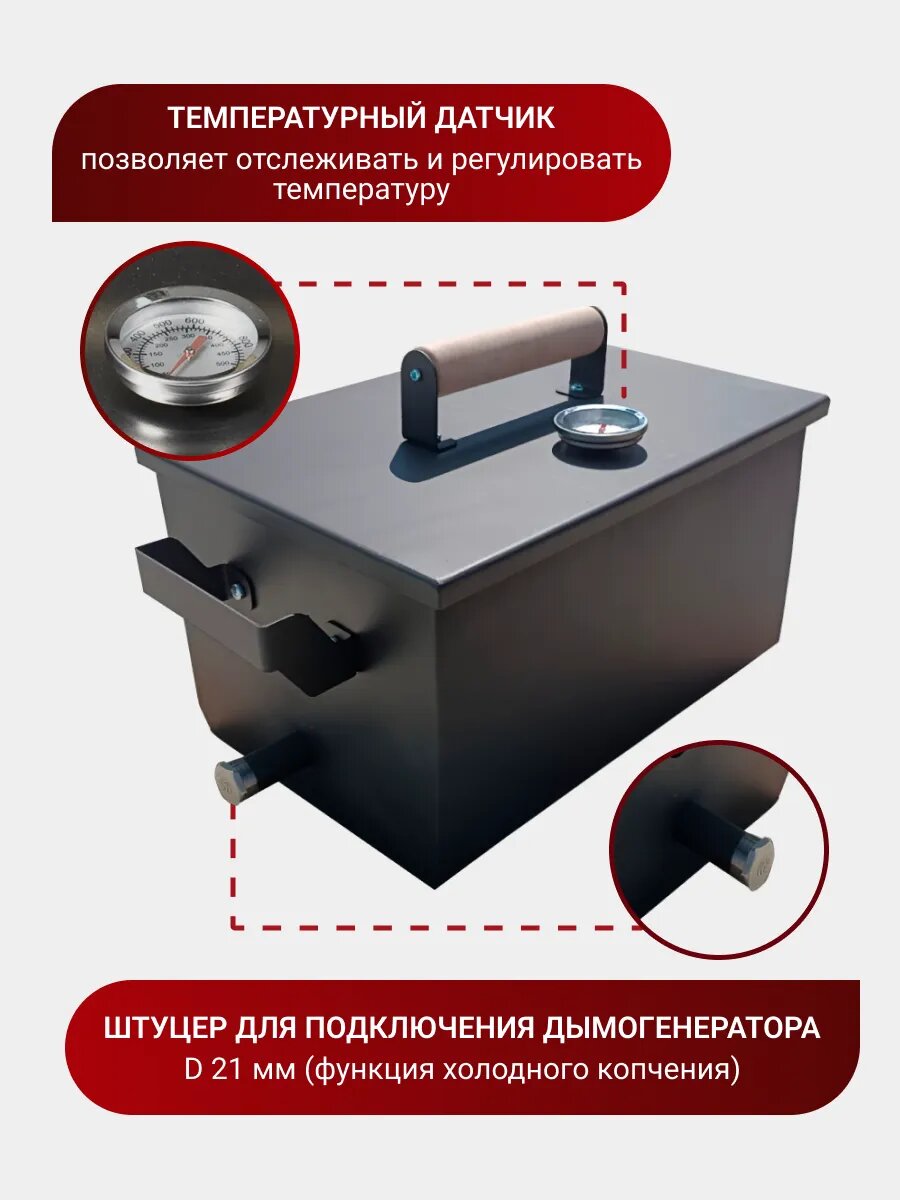 10 цен на Коптильня горячего и холодного копчения нержавеющие решетки с датчиком температуры 2 мм (350*230*200)