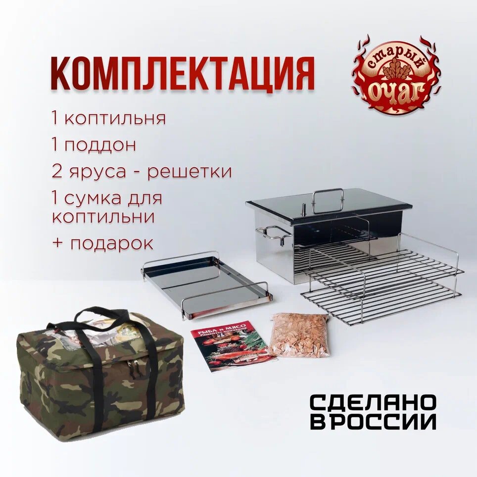 Коптильня горячего копчения "Тунгуска", нержавеющая сталь 1.5мм, 40х25х20 см информация: