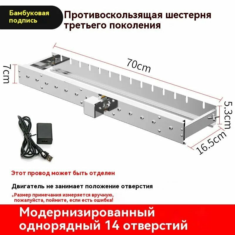 Устройство для вращения шампуров, 70 см, 14 шт Источник питания USB информация: