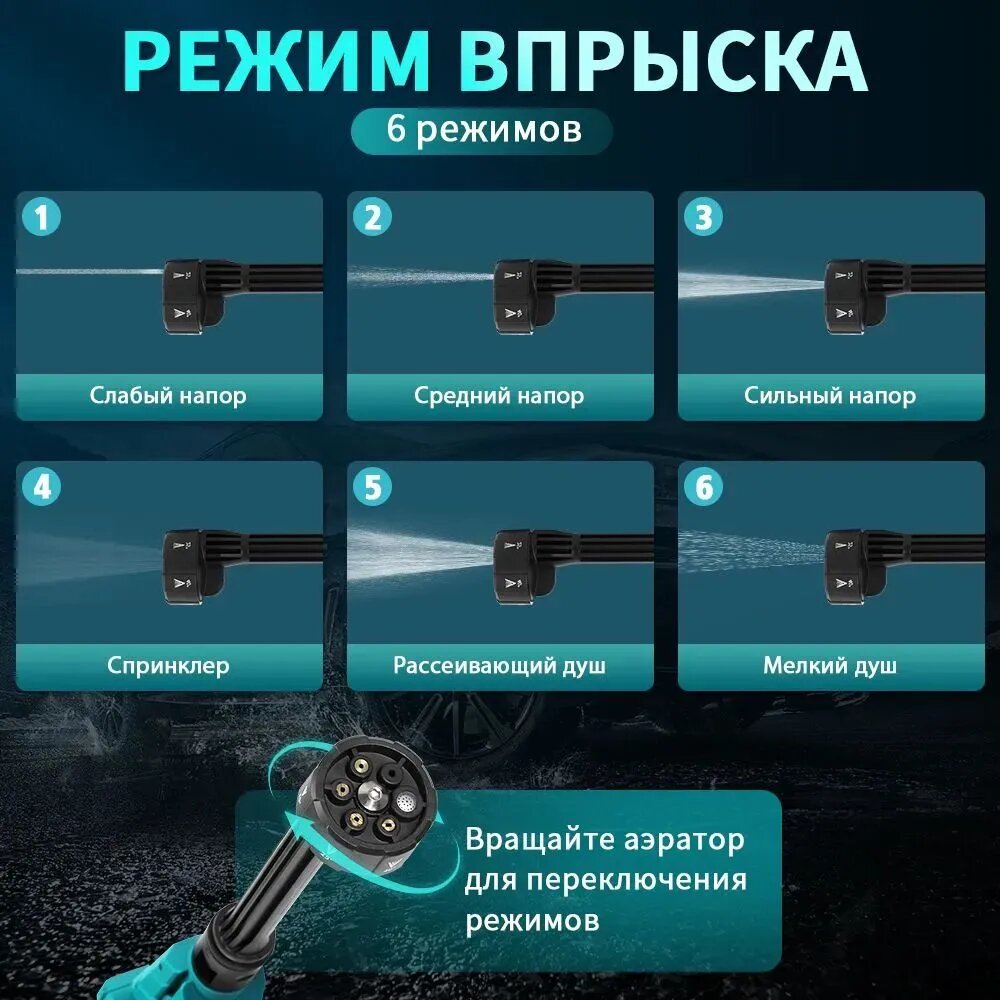 Пистолет высокого давления Kingtree, для автомойки, аккумулятор 21 В, расстояние распыления до 15 м информация: