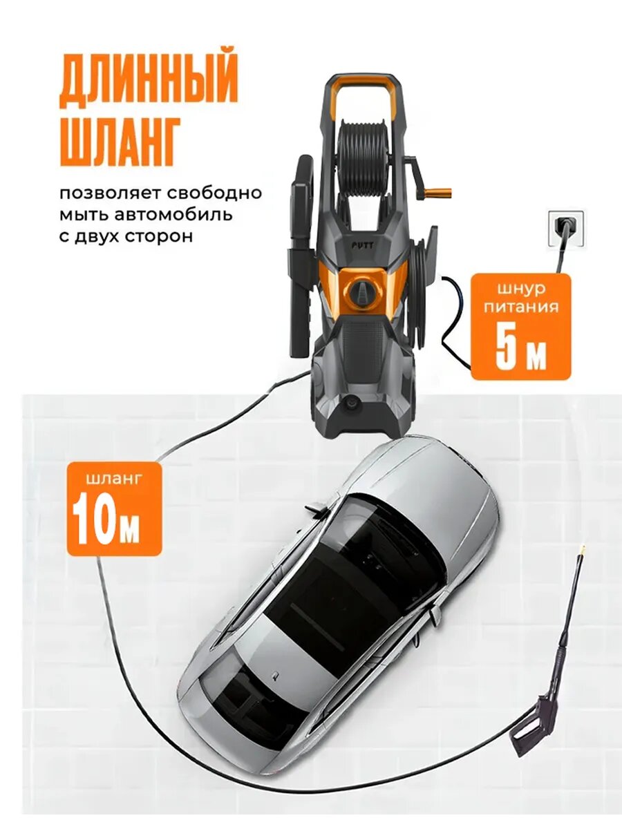 10 цен на Мойка высокого давления PUTT, 2400Вт, 130бар, алюминиевая помпа