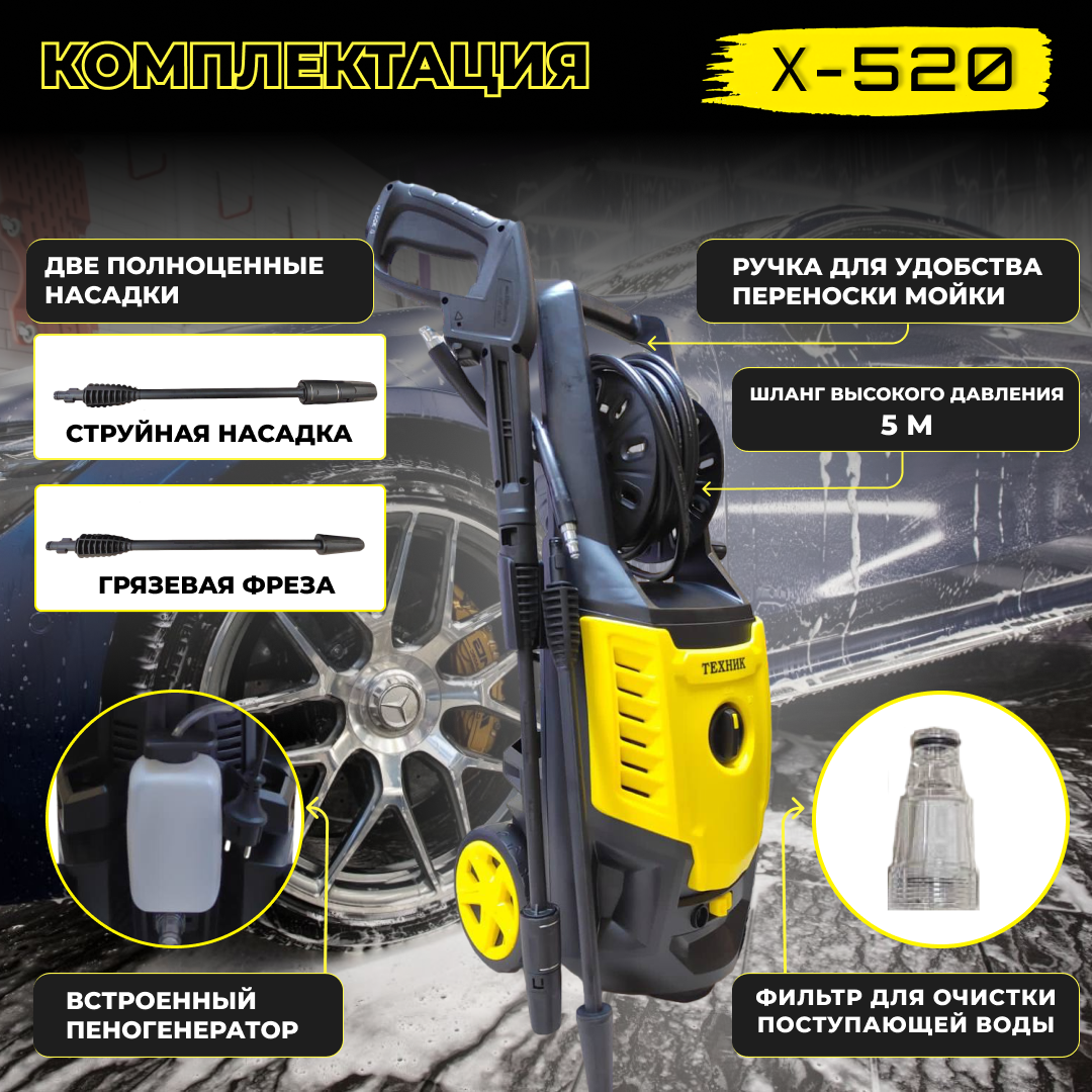 Мойка Техник Х-520, высокое давление 160 бар, мощность 2кВт, алюминиевая помпа информация: