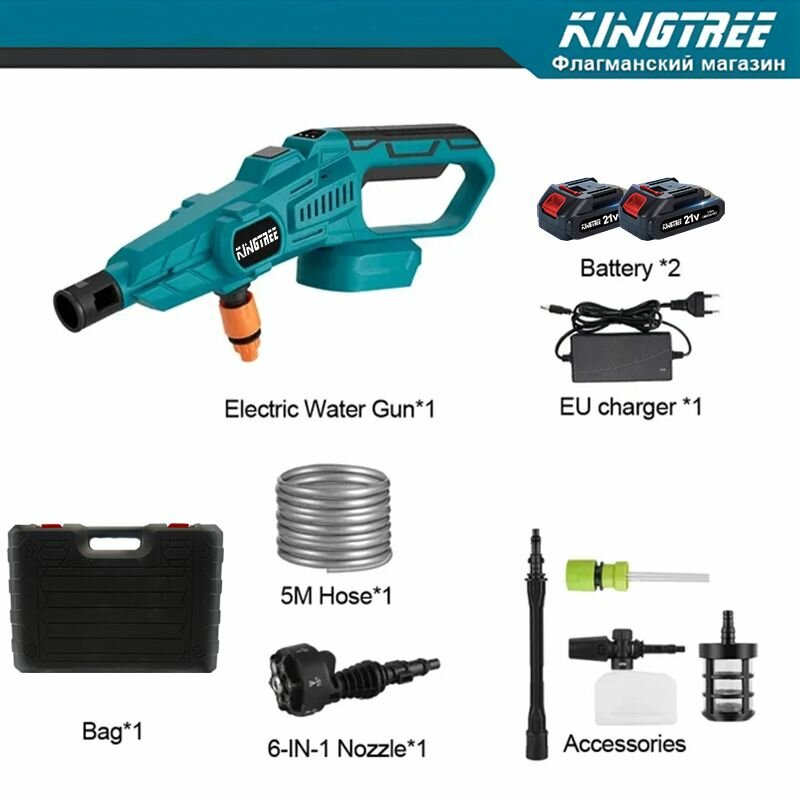 10 цен на Минимойка высокого давления KingTree 800W, портативная, 2 батареи 3.0Ah, шланг 5 м