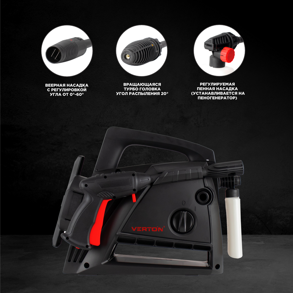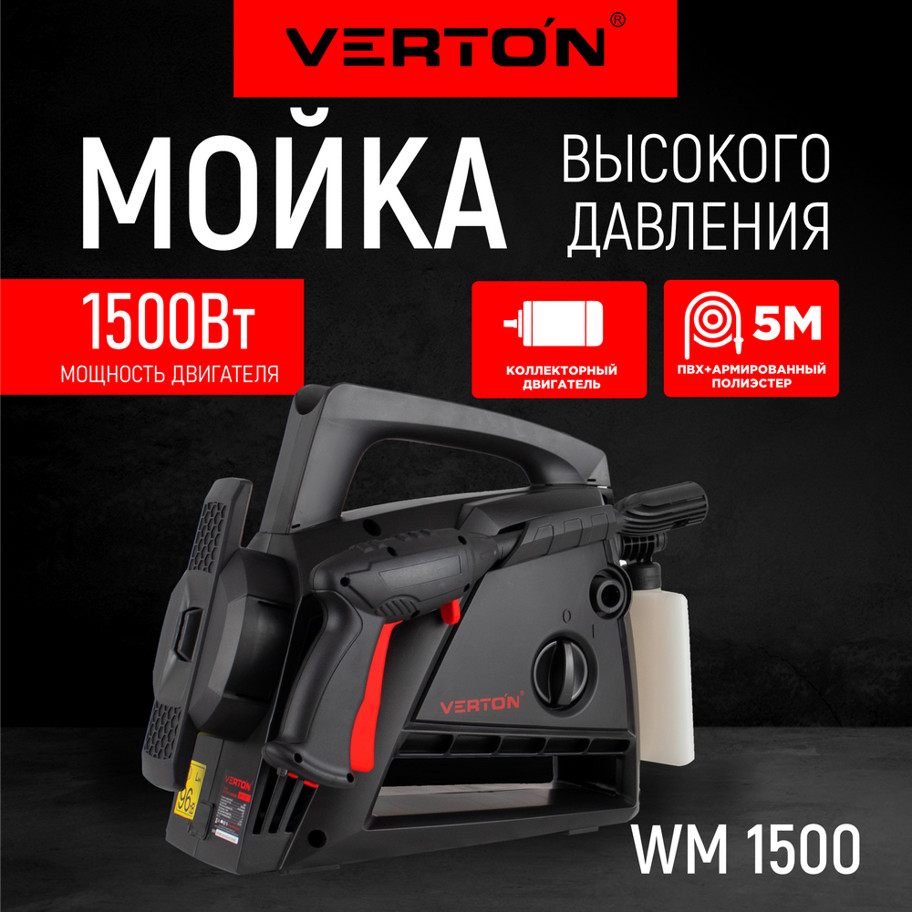 Мойка выс. давл. VERTON WM-1500 (1500 Вт, давл. мин/макс 80/120 бар, расх. воды мин/макс 5,0/5,5 л/мин, 5м шланг) информация:
