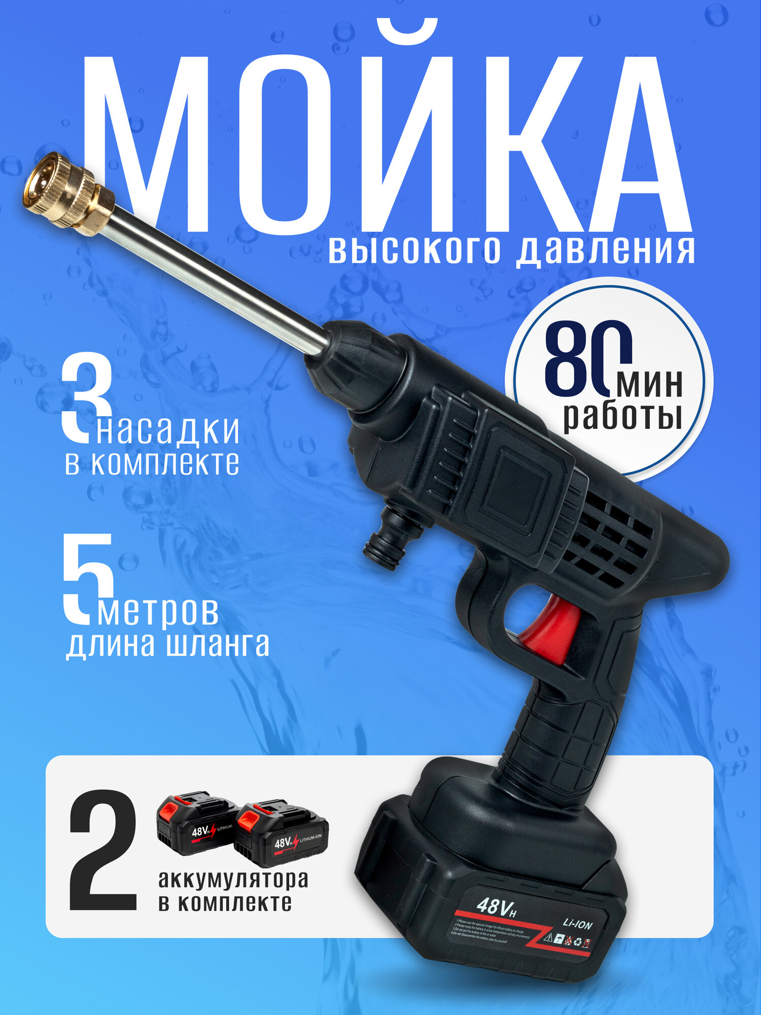 Отзывы на Мойка высокого давления аккумуляторная для автомобиля в кейсе, два аккумулятора 48 Вт, мини мойка с пистолетом