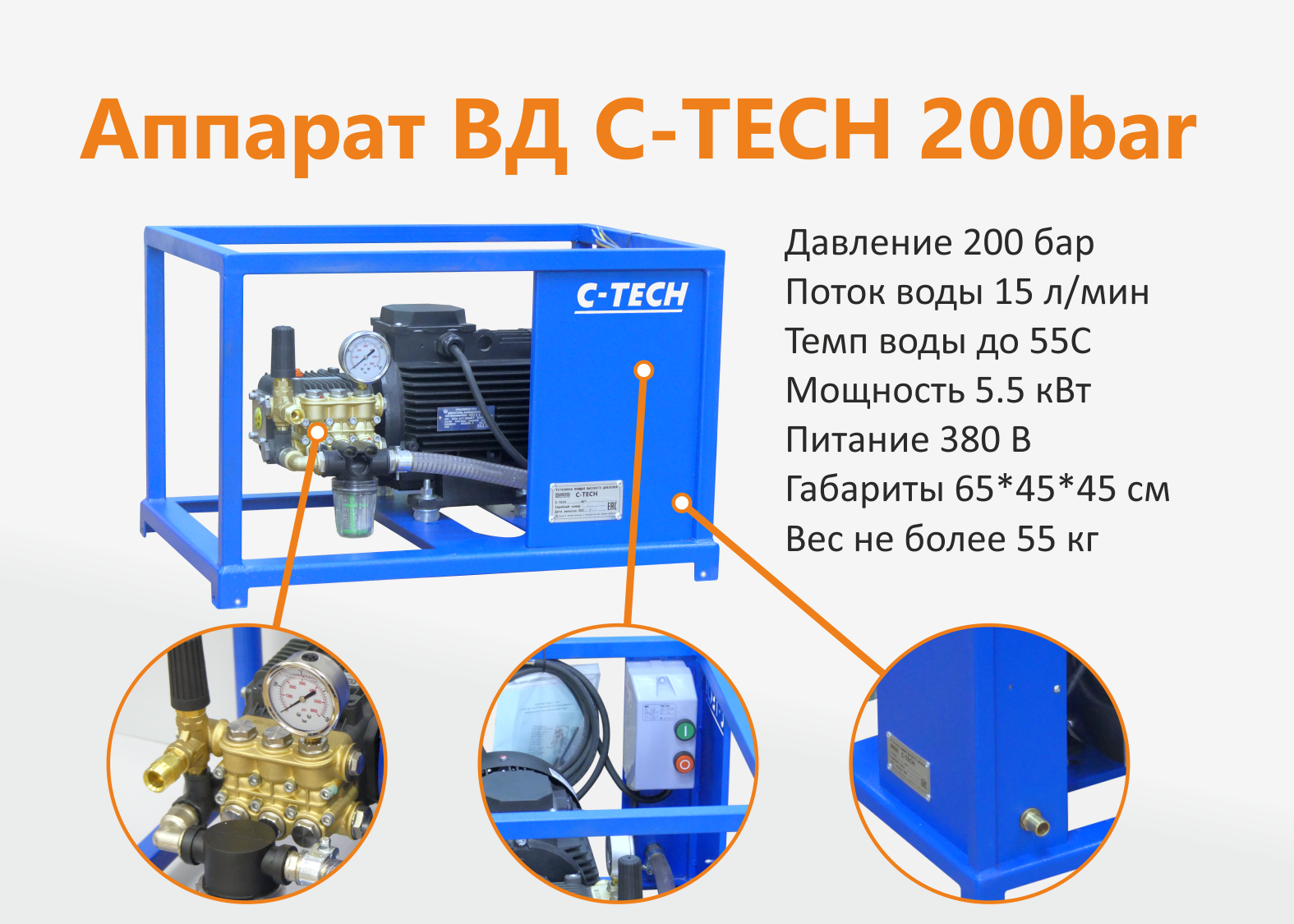 Профессиональная моющая установка C-TECH 3WZ TotalStop (190 бар, 14 л/мин, 4 кВт) + комплект для мойки Практик