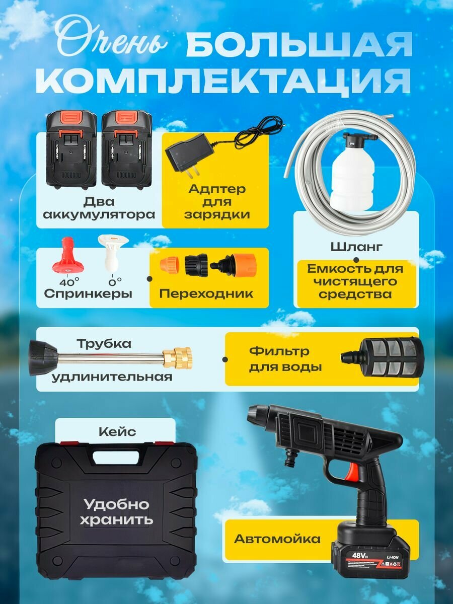 10 цен на Беспроводная автомойка высокого давления с двумя аккумуляторами, Мойка аккумуляторная в кейсе