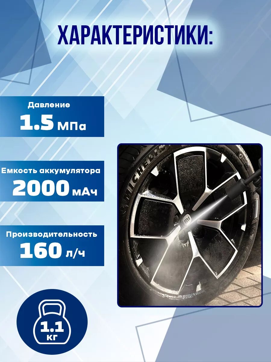 Автомойка беспроводная Mijia Wireless, MJXCJ002QW, с моющим средством, 160л/ч, 2000мАч информация: