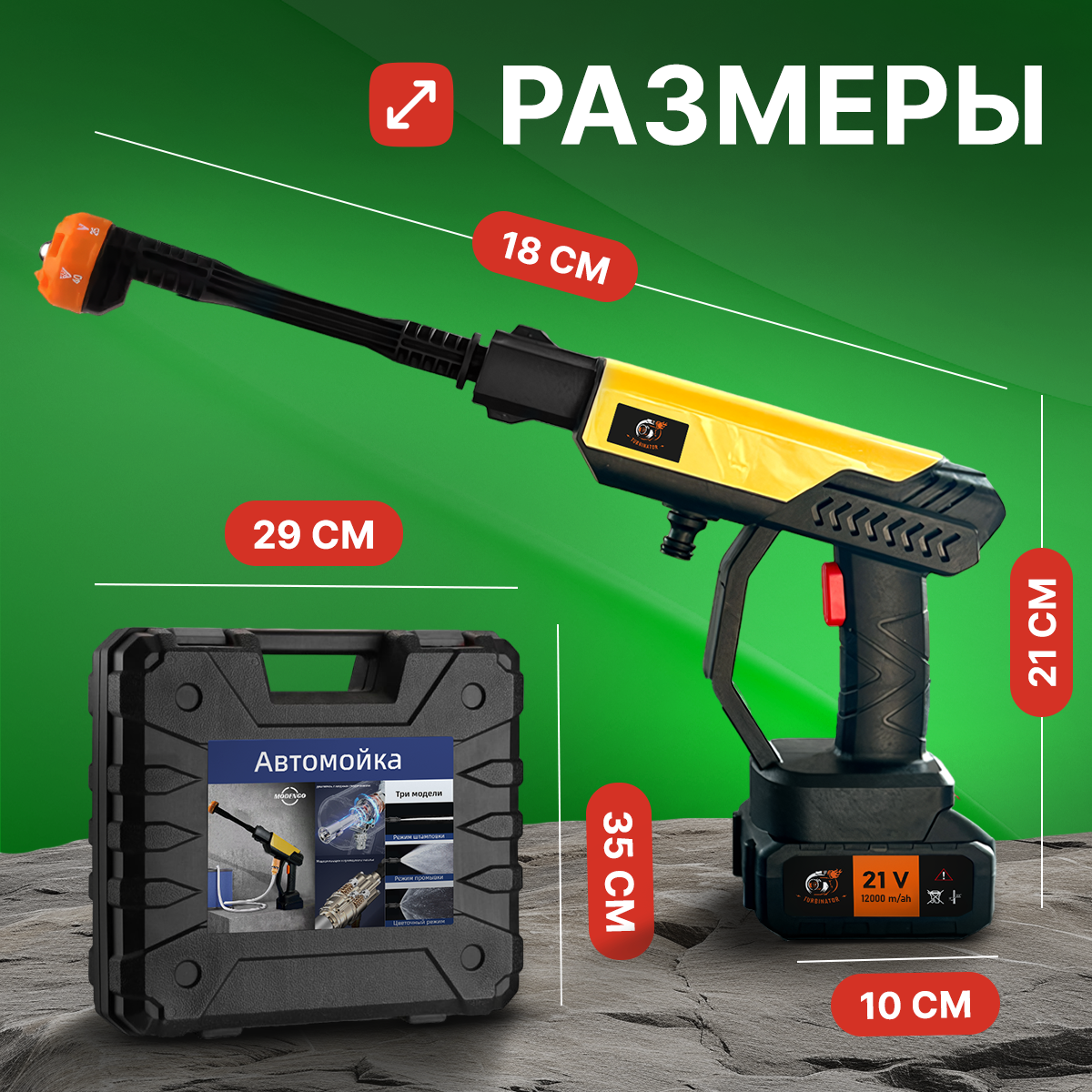 Отзывы на Аккумуляторная автомойка высокого давления, в кейсе с пистолетом и пенообразователем , с насадками 800Вт, 30бар
