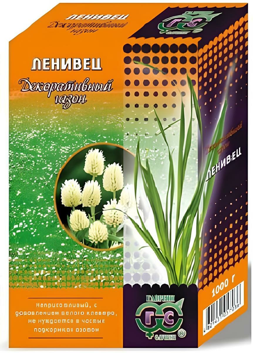 Семена Гавриш "Газон Ленивец", с белым клевером, 1 кг, многолетние, газонная травосмесь, коробка информация: