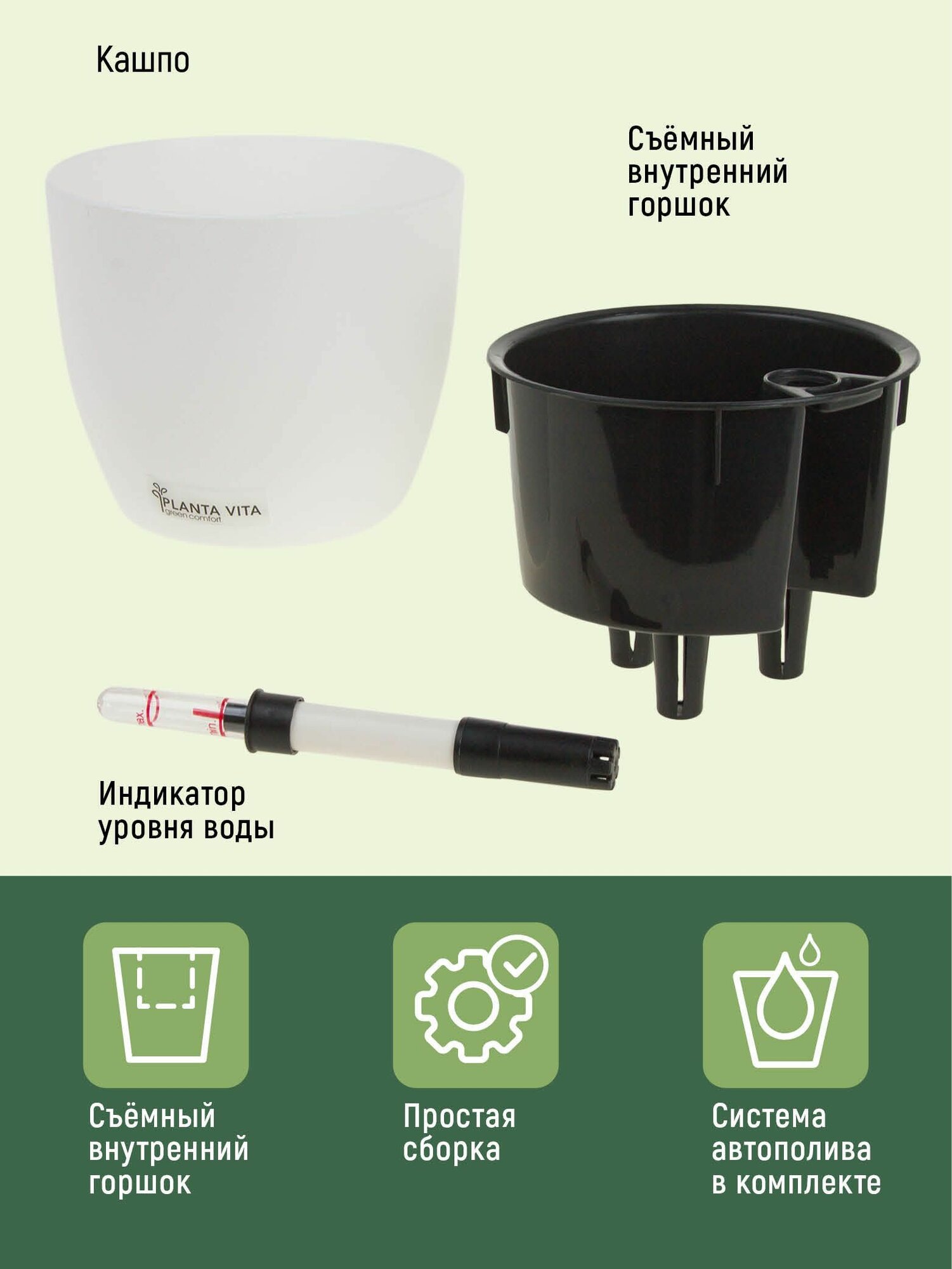 Отзывы на Кашпо для цветов суккулентов кактусов с автополивом пластиковоеPLANTA VITA Round Matt white горшок настольный для декора D15xH13 см