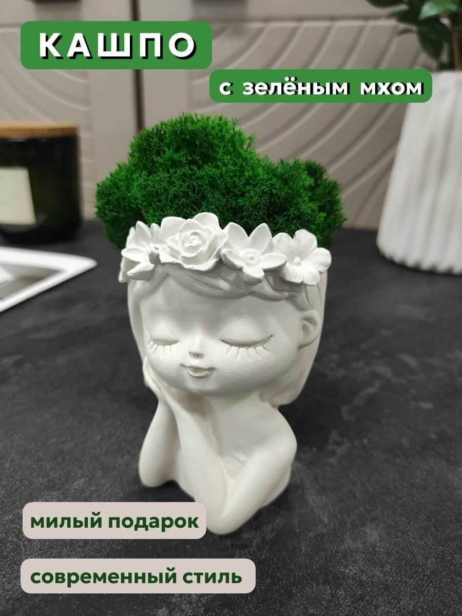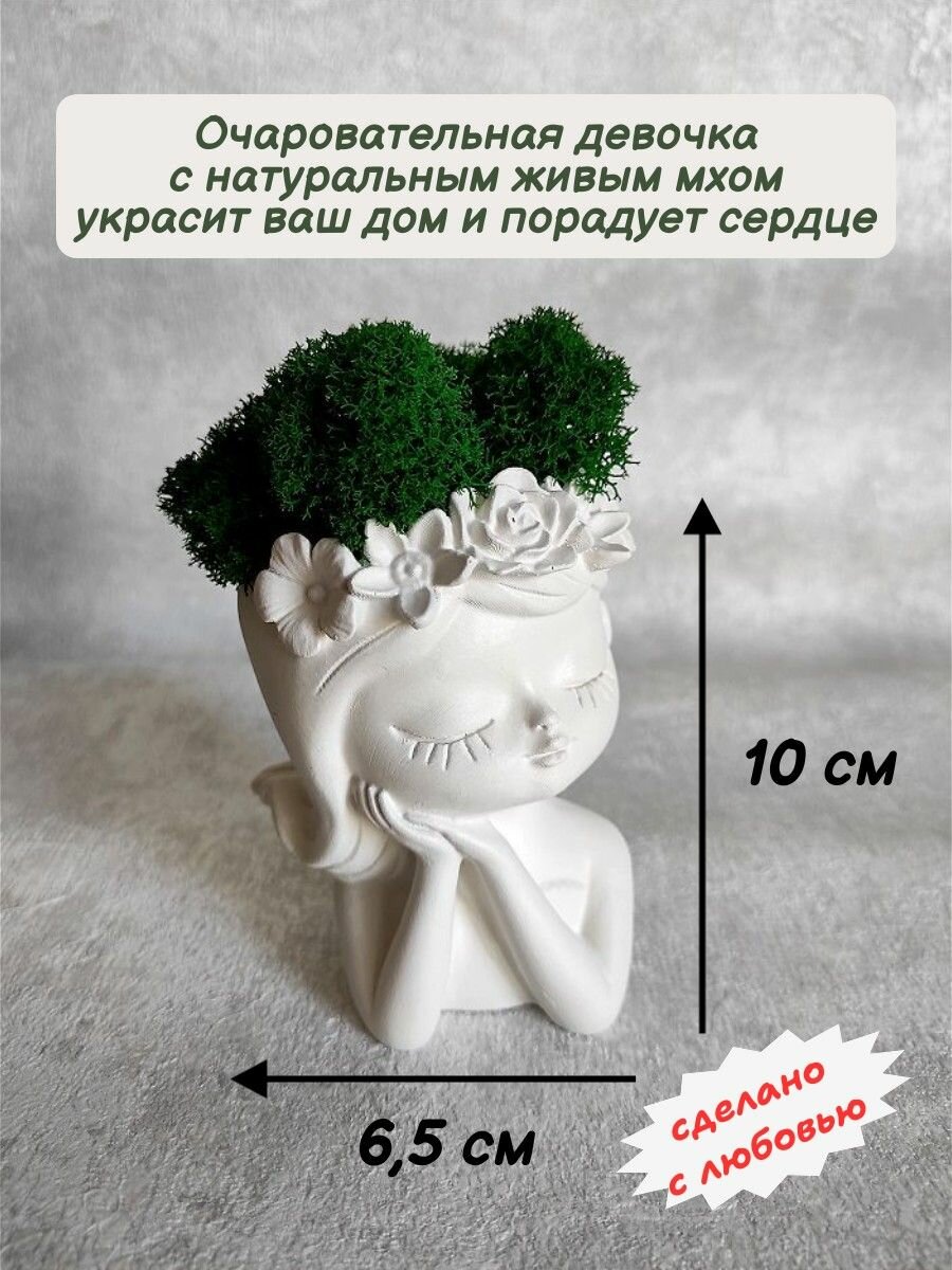 Отзывы на Кашпо мини статуэтка Девочка с цветами со стабилизированным мхом
