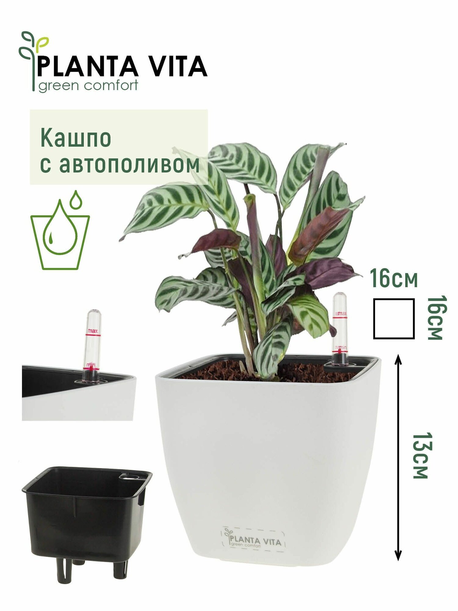 Кашпо для цветов суккулентов кактусов с автополивом пластиковое PLANTA VITA Square Matt white горшок настольный для декора 16х16хH13 см информация: