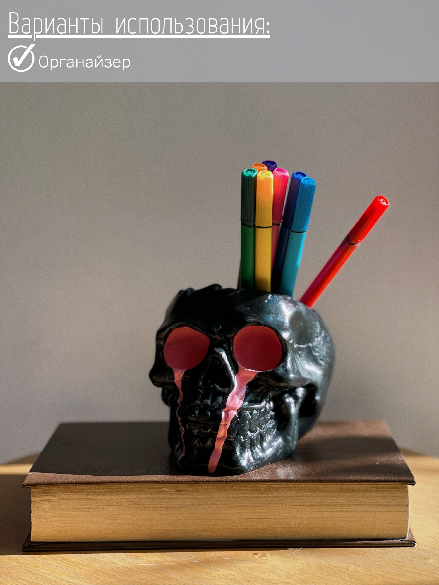 10 цен на Кашпо-органайзер "Череп" в черном цвете с розовым, 10 см, гипс