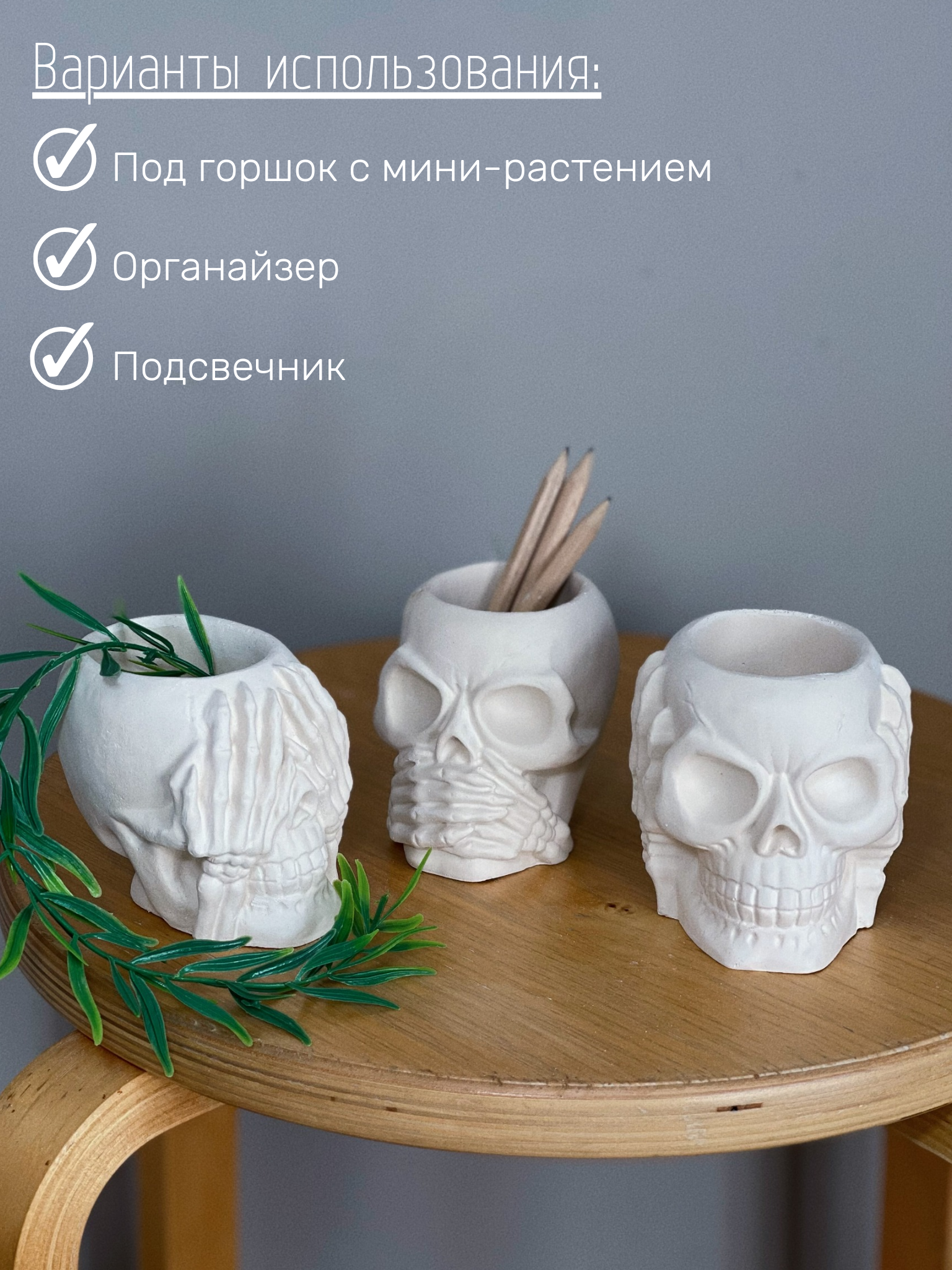 Отзывы на Набор кашпо Черепа "Не вижу, не слышу, не говорю", 8 см, 3 шт, гипс