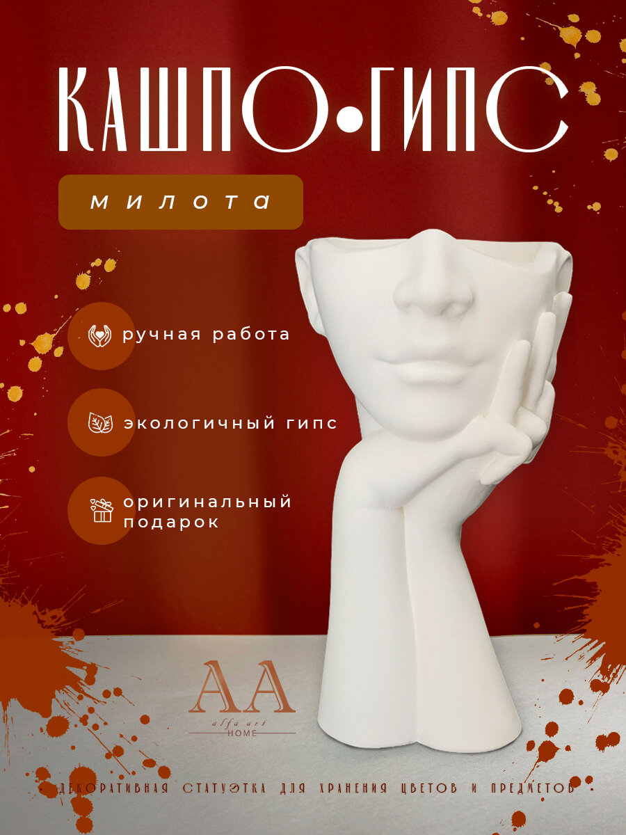 Отзывы на Декоративное кашпо белое из гипса для цветов голова девушка с руками Милота / Ваза для конфет