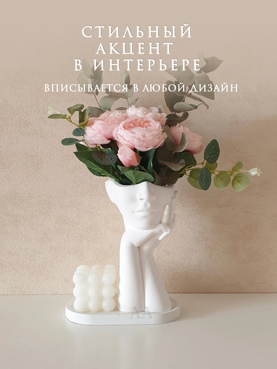 10 цен на Декоративное кашпо белое из гипса для цветов голова девушка с руками Милота / Ваза для конфет