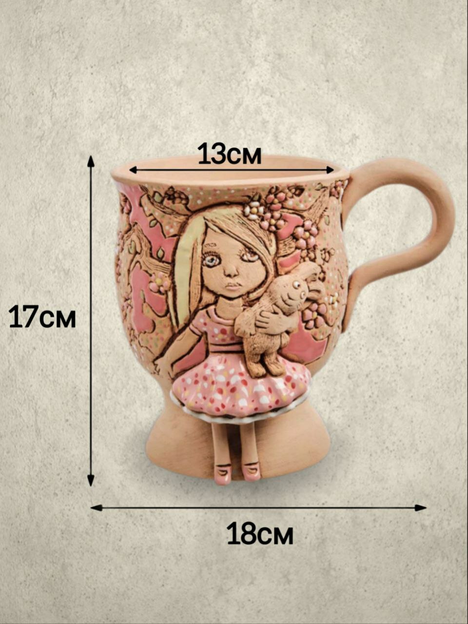 Отзывы на Авторское керамическое кашпо для цветов ручной работы, Девочка в цветущем саду с зайкой, 0,95л