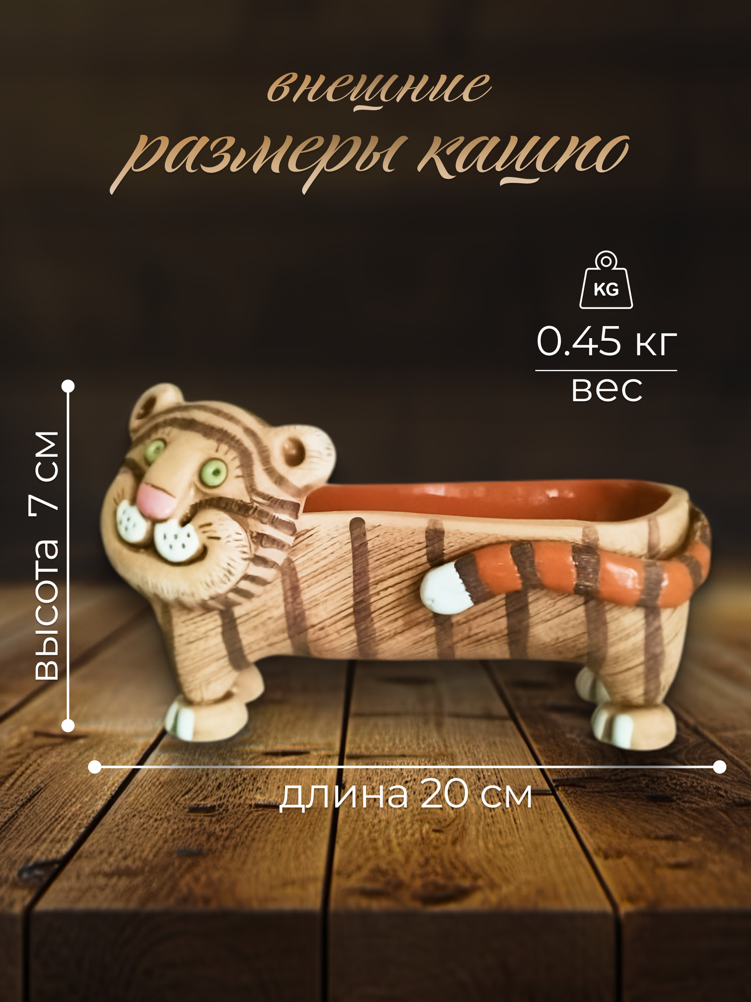 Авторское керамическое кашпо для цветов ручной работы, Тигр на ножках информация:
