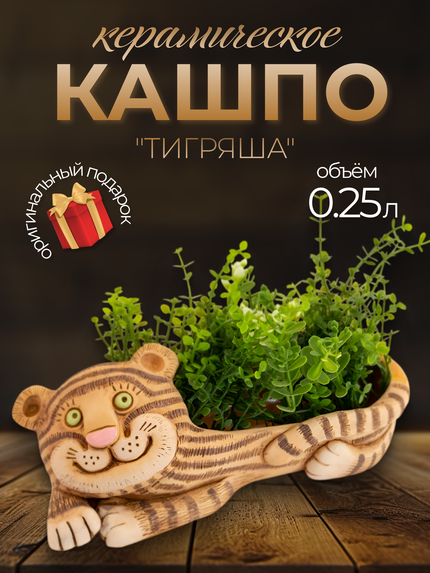 Отзывы на Авторское керамическое кашпо для цветов ручной работы, Тигр лежачий