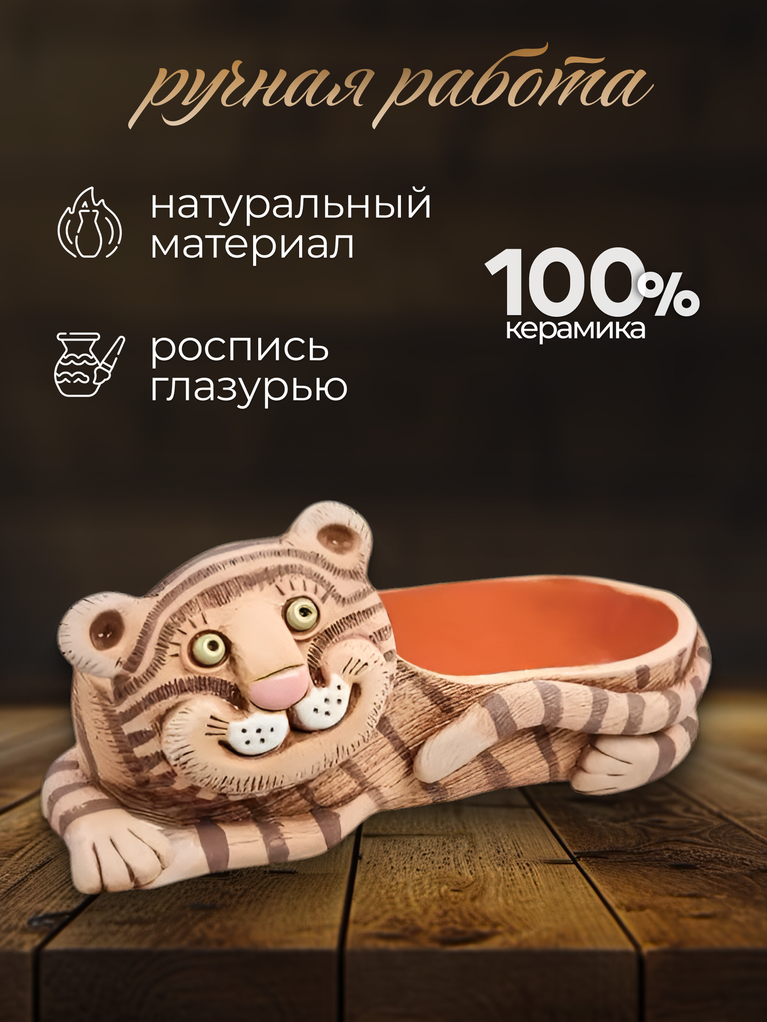 10 цен на Авторское керамическое кашпо для цветов ручной работы, Тигр лежачий