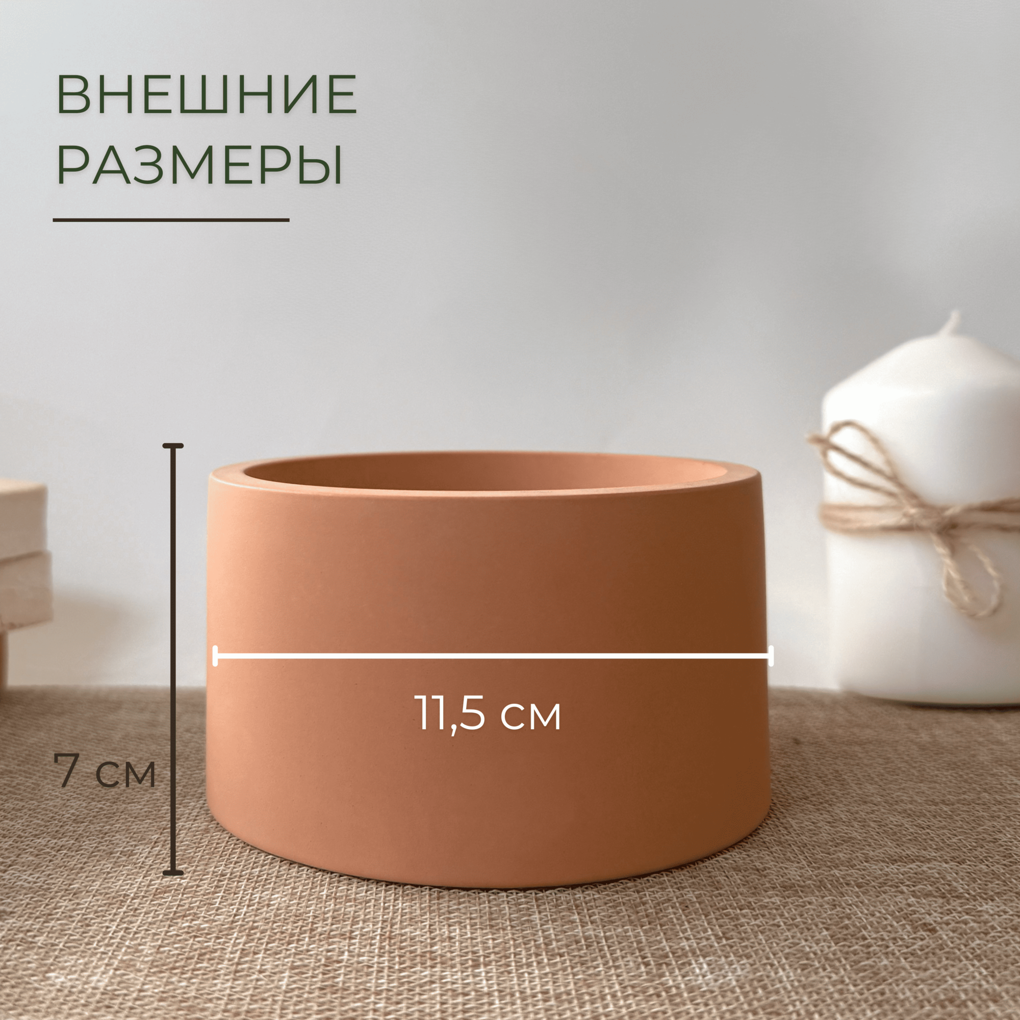 Кашпо для цветов и суккулентов, 11,5 х 7 см, 500 мл, цветочный горшок, оранжевый, гипсоцемент, ручная работа информация: