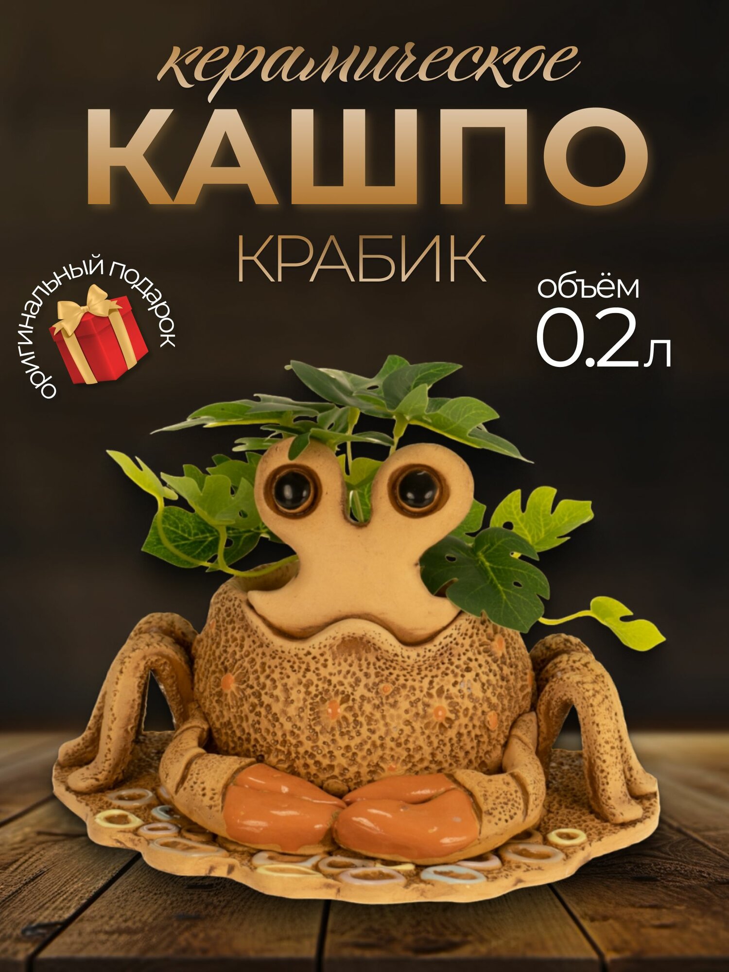 10 цен на Авторское керамическое кашпо для цветов ручной работы, Крабик, 0,2л