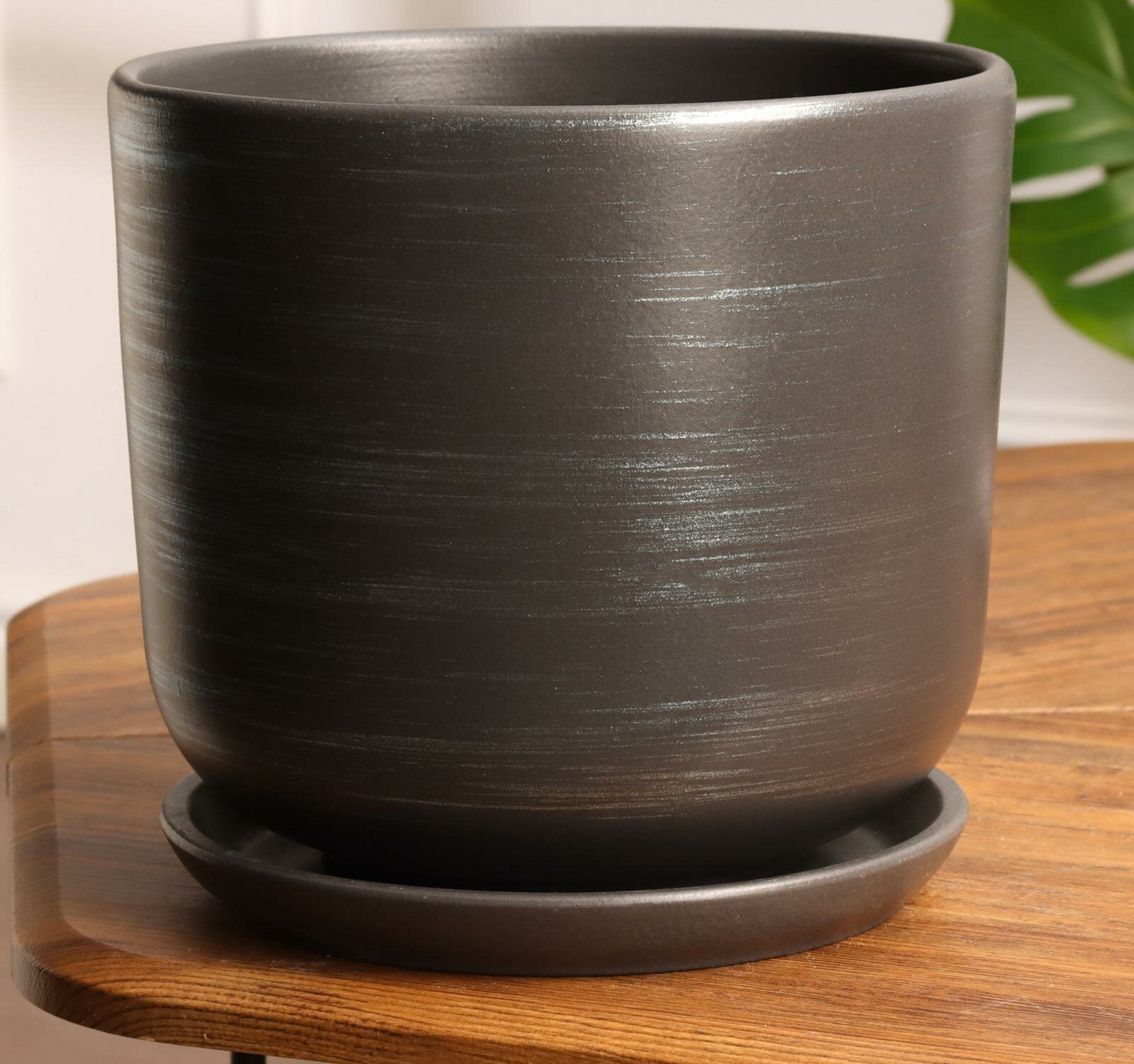 Горшок для цветов керамический "Галактика-5" 5,4л, д22см, h19см, форма "Цилиндр", с поддоном, графит информация: