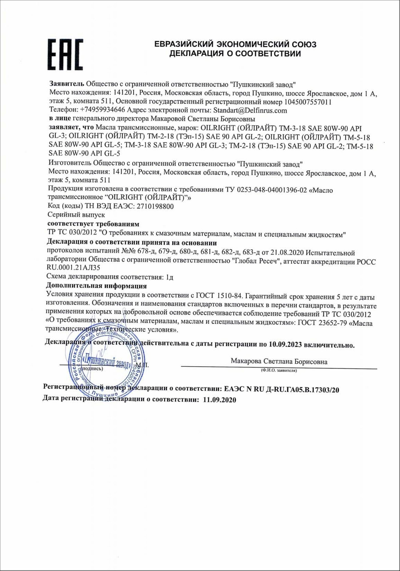 | Производитель | OILRIGHT |