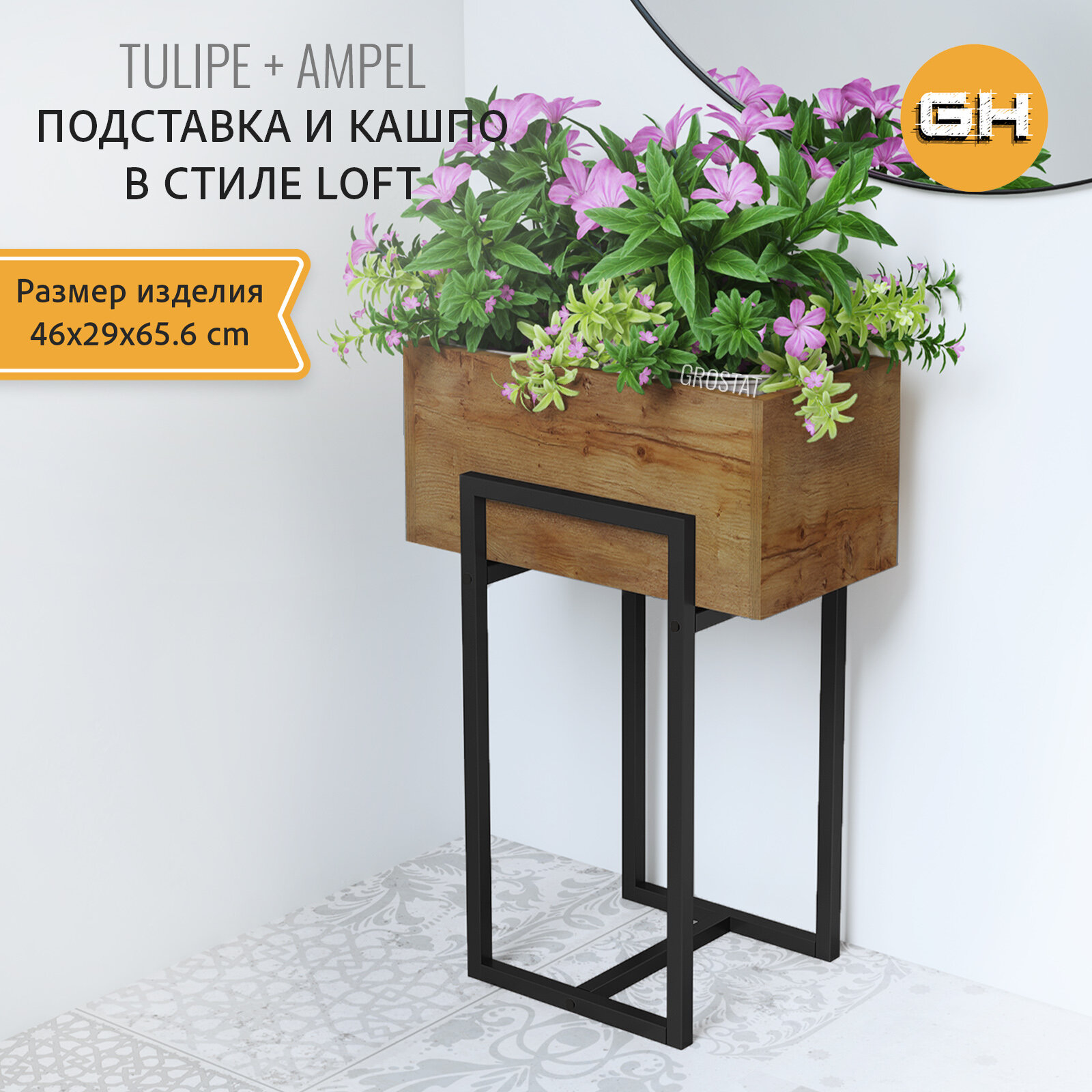 Кашпо напольное на ножках TULIPE loft, горшок для цветов, дуб вотан, 37.2*29*65.6 см, гростат 5 900 ₽